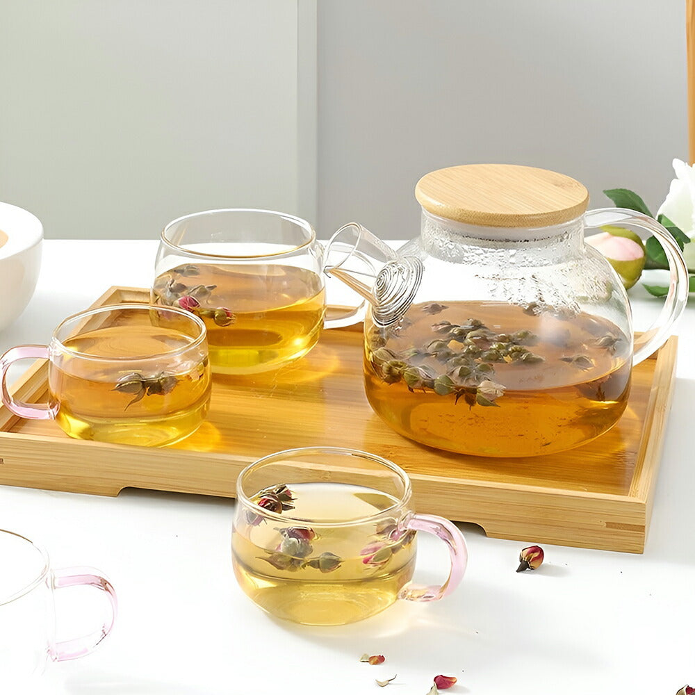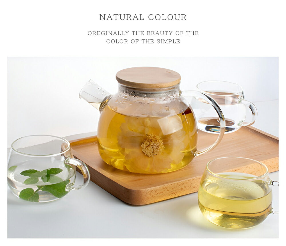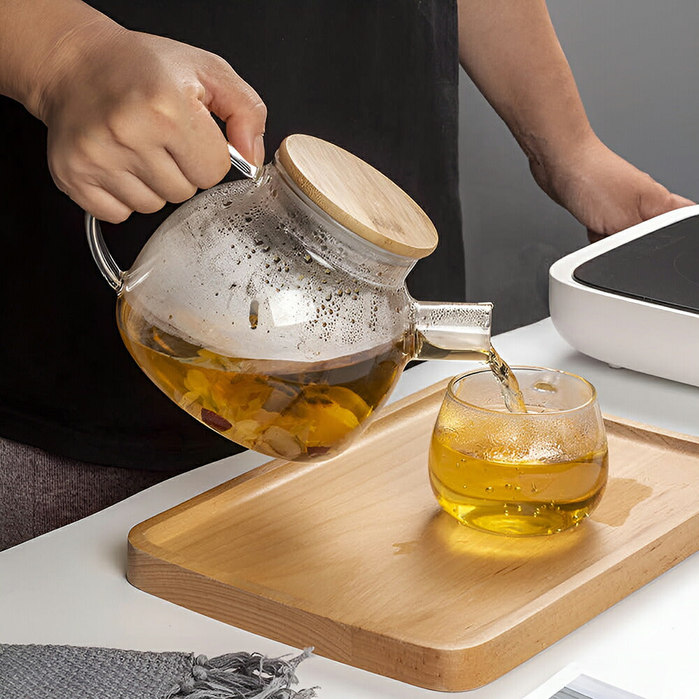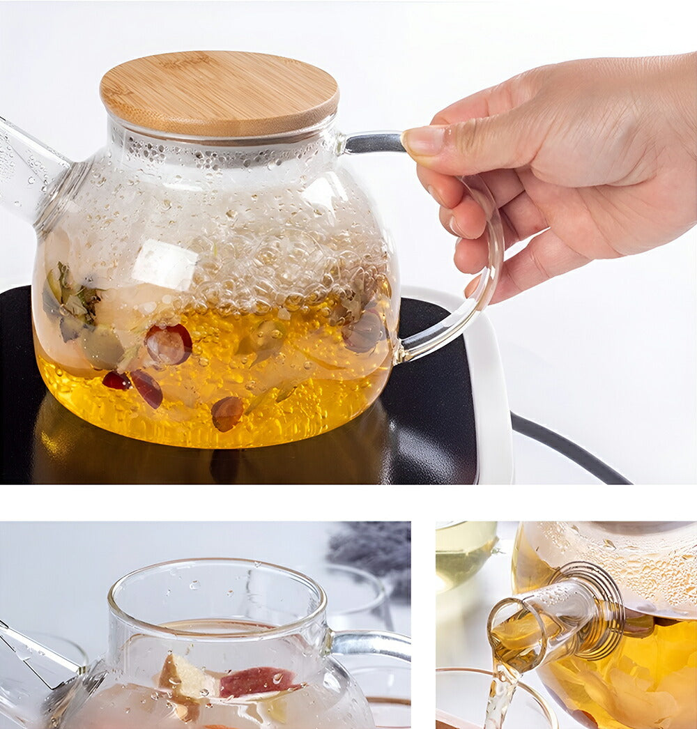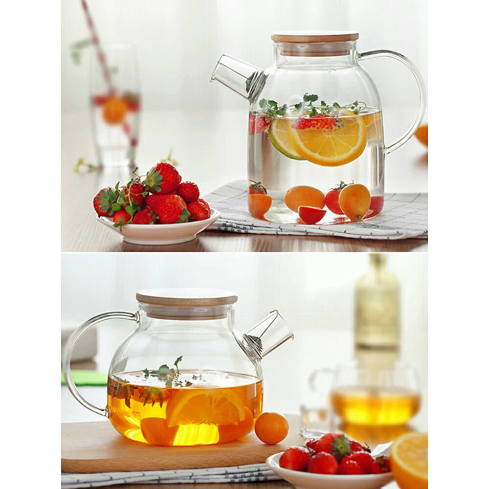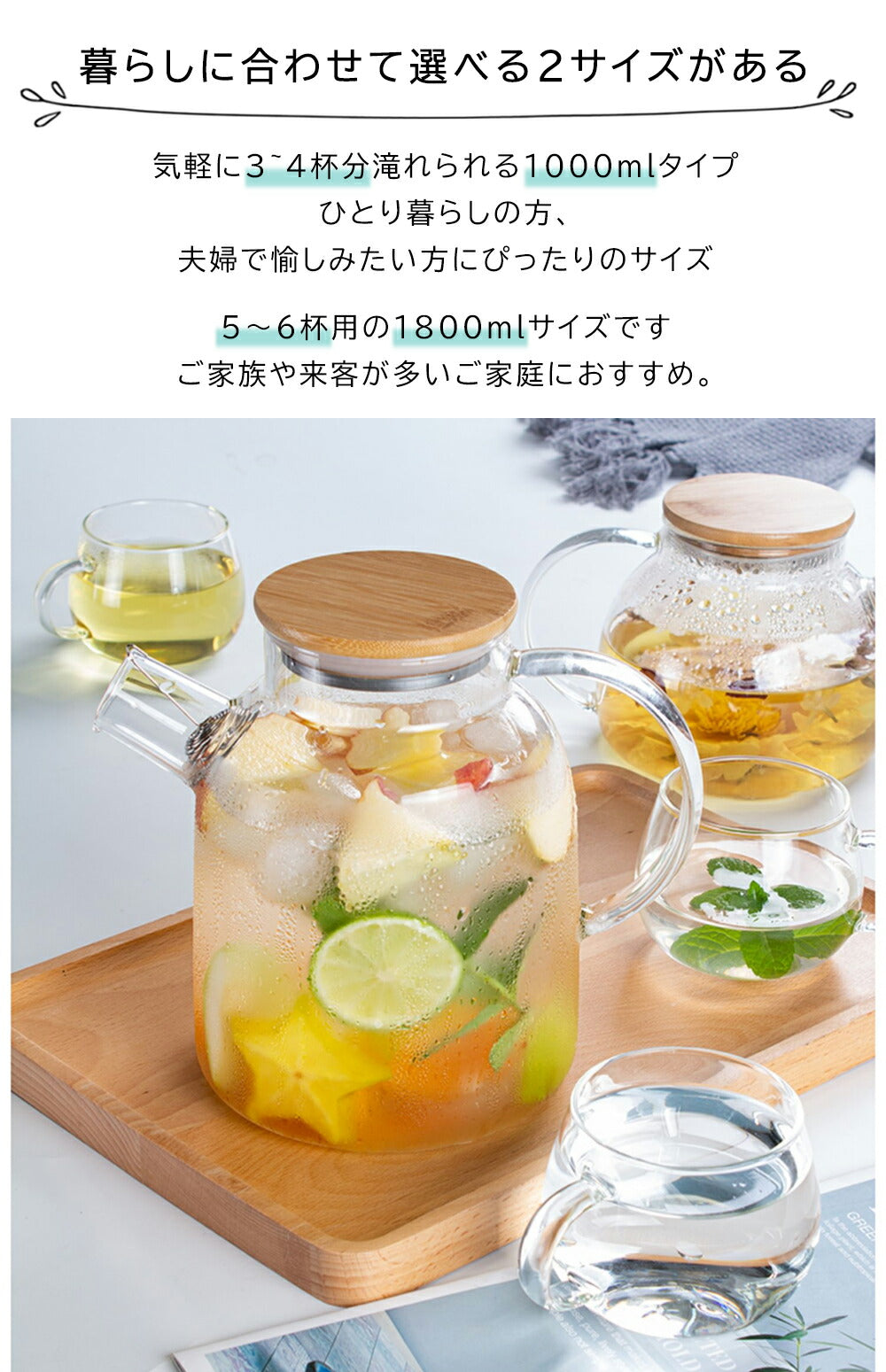 IwaiLoft 北欧 耐熱ガラス ティーポット ガラス急須 金針茶こし付き ガラスやかん ジュース ドリンクポット 竹・ステンレス蓋 ガラスポット 冷蔵庫入れる 麦茶ポット おしゃれ 紅茶ポット 冷茶 フルーツティー 花茶 工芸茶 にオススメ 洗いやすい ピッチャー 直火可