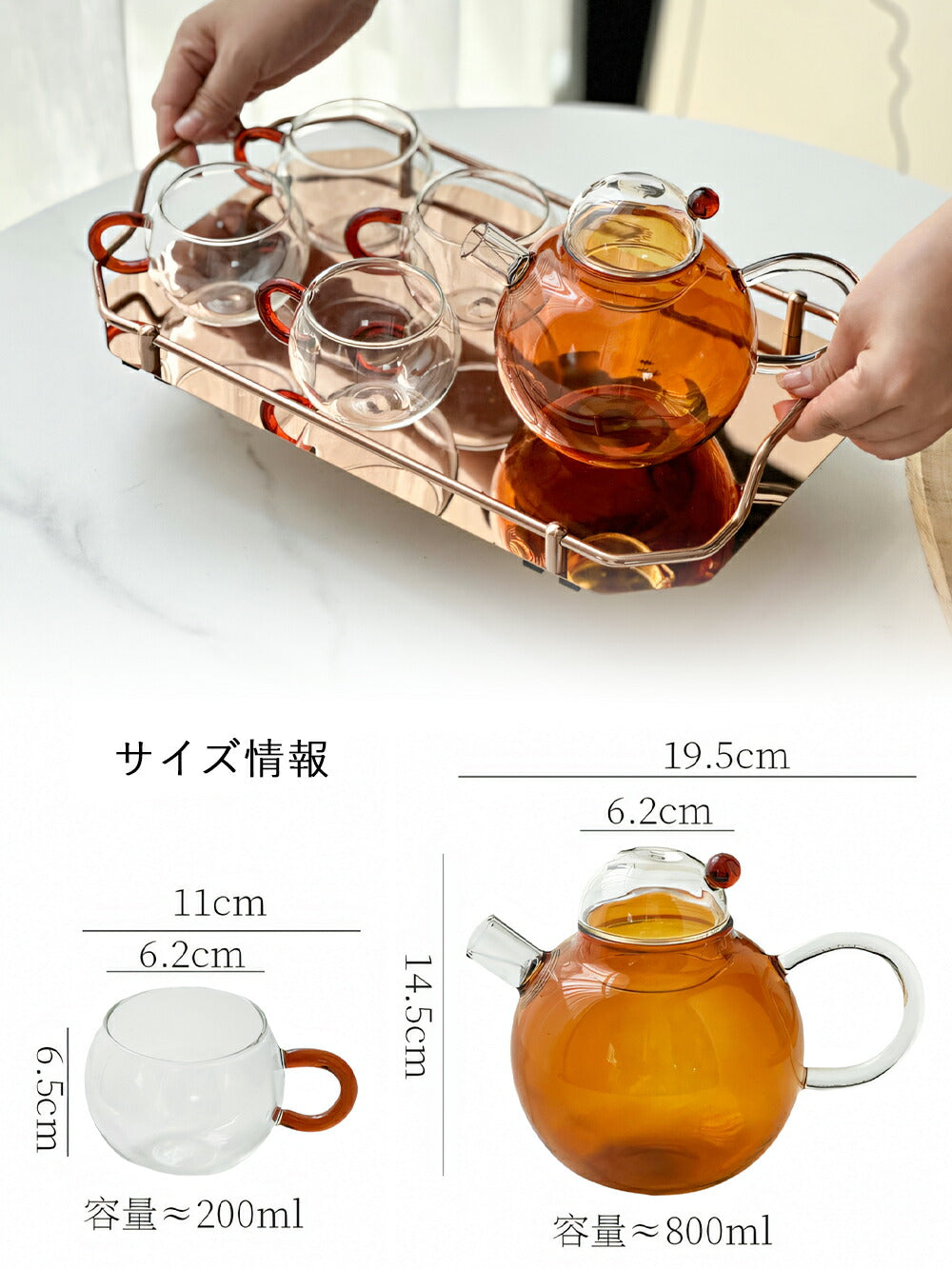 | 品質表示 | 材質:耐熱ガラス(耐熱温度差120℃) ポット約800mL(3~5人分)、グラス約200mL 重量(個箱含む) 800g サイズ:サイズ: 各写真よりご確認 |