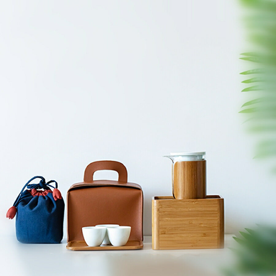 影青・竹 茶器セット 青白磁 小 宝瓶 急須 湯呑 片口 3客セット 竹製 紅茶ポット お茶ポット 煎茶器 茶器 煎茶 茶碗 蓋碗 公道杯 酒器セット 中国茶器 旅持ち 携帯バッグ 携帯用バッグ 竹箱 アウトドア 旅 ティーセット 台湾茶 ウーロン茶 紅茶 茶器 IwaiLoft