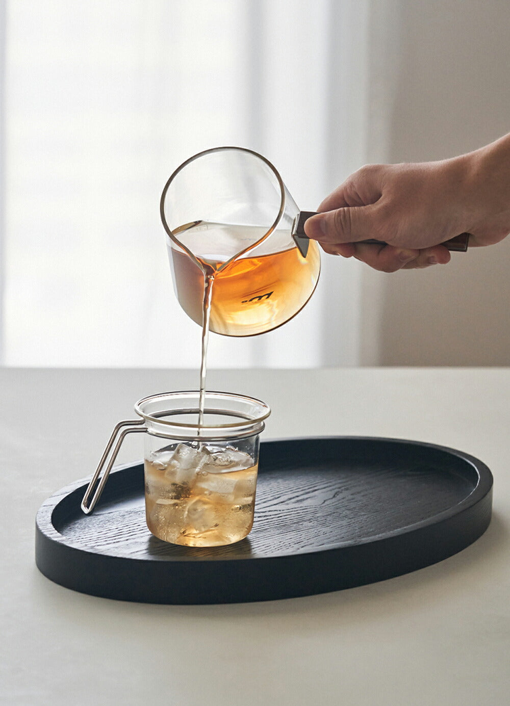 一目瞭然のデザインが特徴の耐熱ガラス製ガラスポットは、直火での使用が可能で、ティーポットやコーヒーサーバーとしても活躍します。550mlの容量を持ち、V字型の注ぎ口により液体をスムーズに注ぐことができます。木製ハンドルは持ちやすく、食洗機対応でお手入れも簡単です。ミルクピッチャーやソースパンとしても使用できる多機能なガラス調理鍋です。IwaiLoftの品質をぜひお試しください。