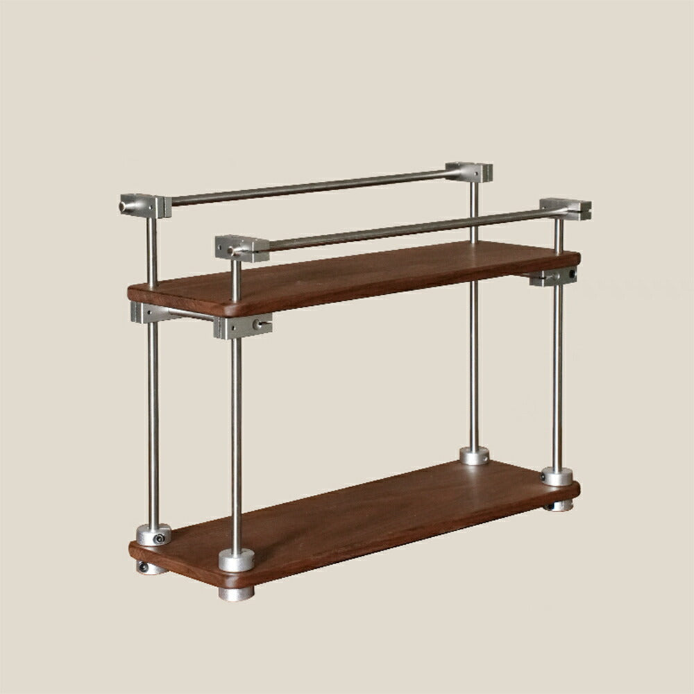 Wood Art 銘木 机上ラックは、シンプルで高級感のあるデザインが特徴の木製卓上ラックです。ウールナット材を使用し、北欧風のインテリアにぴったりのアイテムです。2段構造で、コスメや小物、カップなどを効率的に収納できます。オープンラック形式により、使いやすさと見た目の美しさを両立。デスク上やアウトドアでの使用にも適しています。どんな空間にも自然に溶け込み、整理整頓をサポートします。