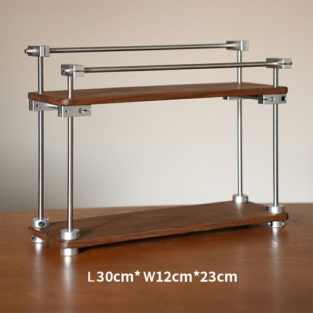 Wood Art 銘木 机上ラック 2段 木製 卓上ラック コスメ収納 長方形 ミニラック カップ収納 食器棚 卓上収納ラック ウールナット デスク上置棚 展示棚 インテリア シンプル 高級感 オープンラック オープンシェルフ コスメ 化粧品 器 収納 小物入れ 北欧 アウトドア IwaiLoft