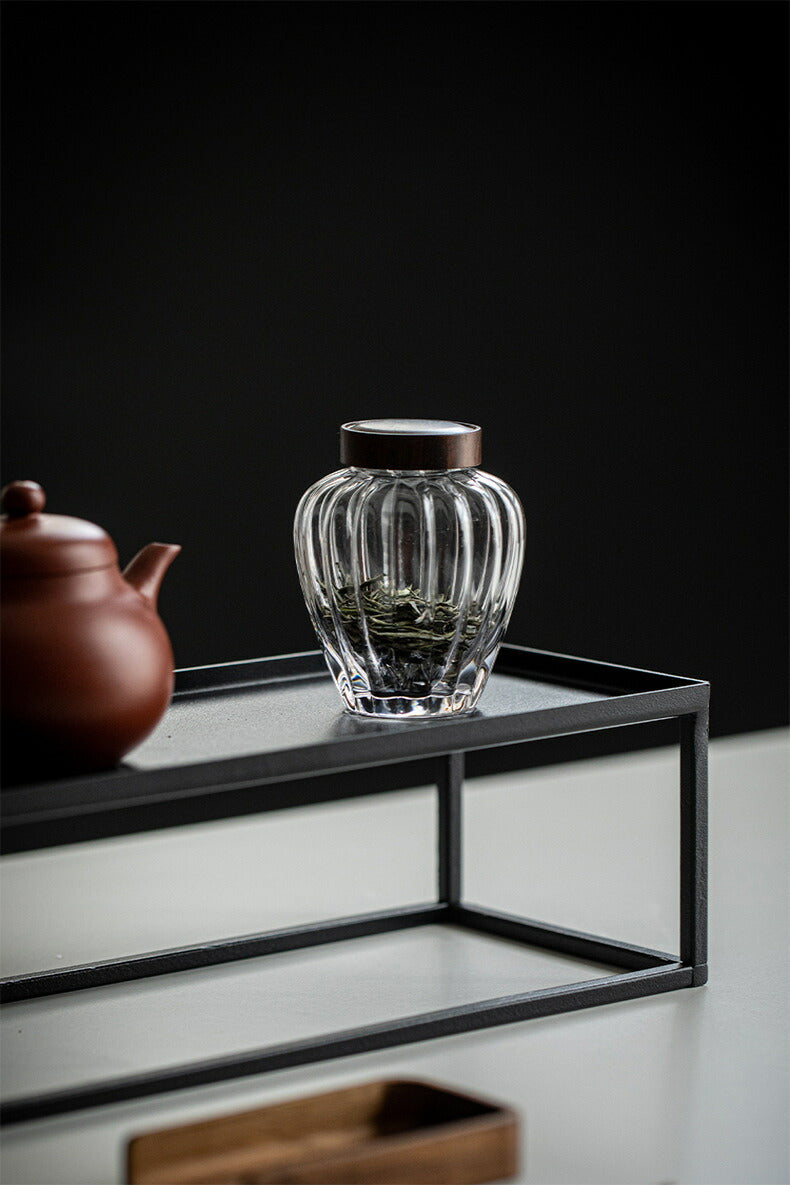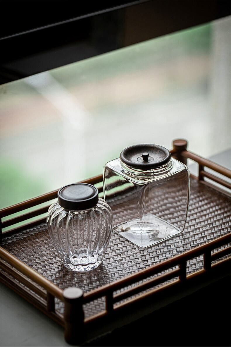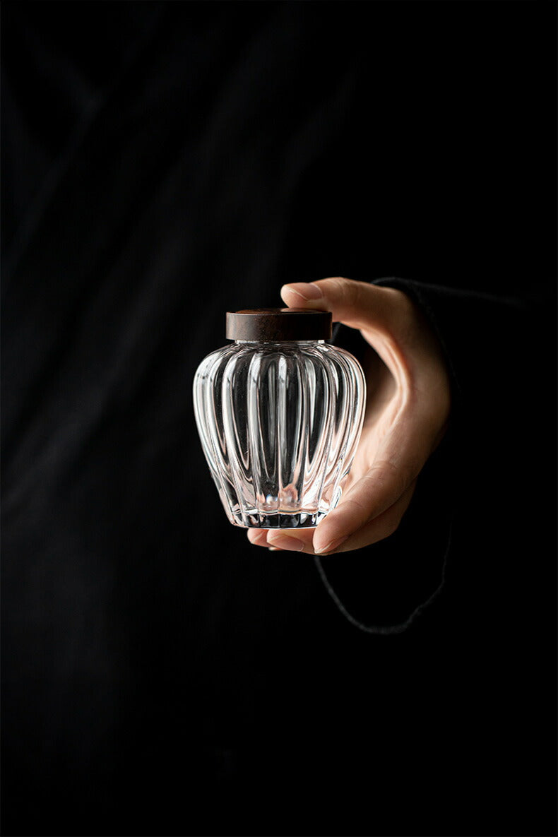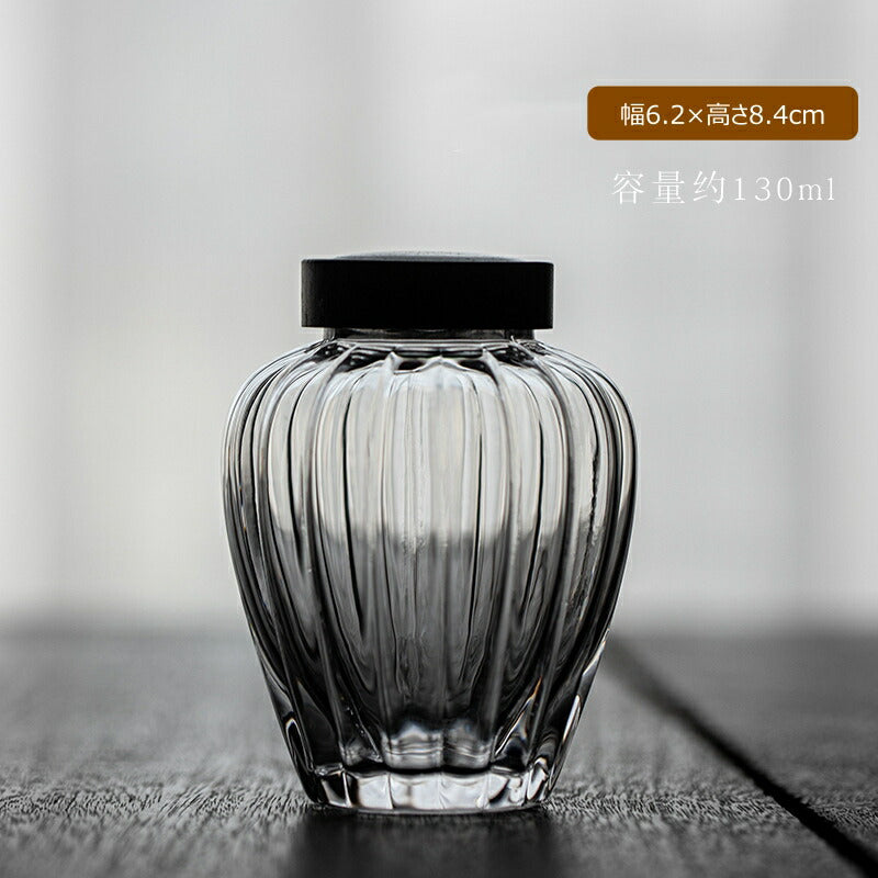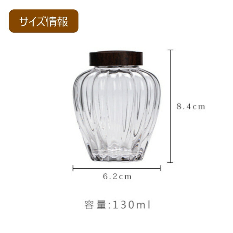 カボチャ 茶筒 耐熱ガラス キャニスター 棗 かわいい ガラス 小鉢 130ml 木蓋付 透明 モールガラス 砂糖入れ 調味料ポット 砂糖ポット 耐熱 ガラス コーヒーキャニスター 珈琲キャニスター 一輪挿し 蓋つき小鉢 蓋物 茶入 茶葉 保存容器 防湿 IwaiLoft Glass Canister