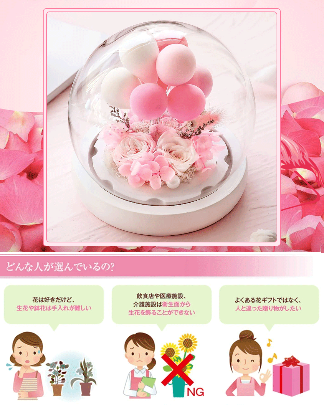 IwaiLoft バルーン プリザーブドフラワー バラ 枯れないお花 お花のギフト ローズ 薔薇 花束 ガラスドーム 恋人 彼女 お返し 記念日 結婚 プロポーズ クリスマス プレゼント 結婚記念日 フラワー インテリア 縁起物