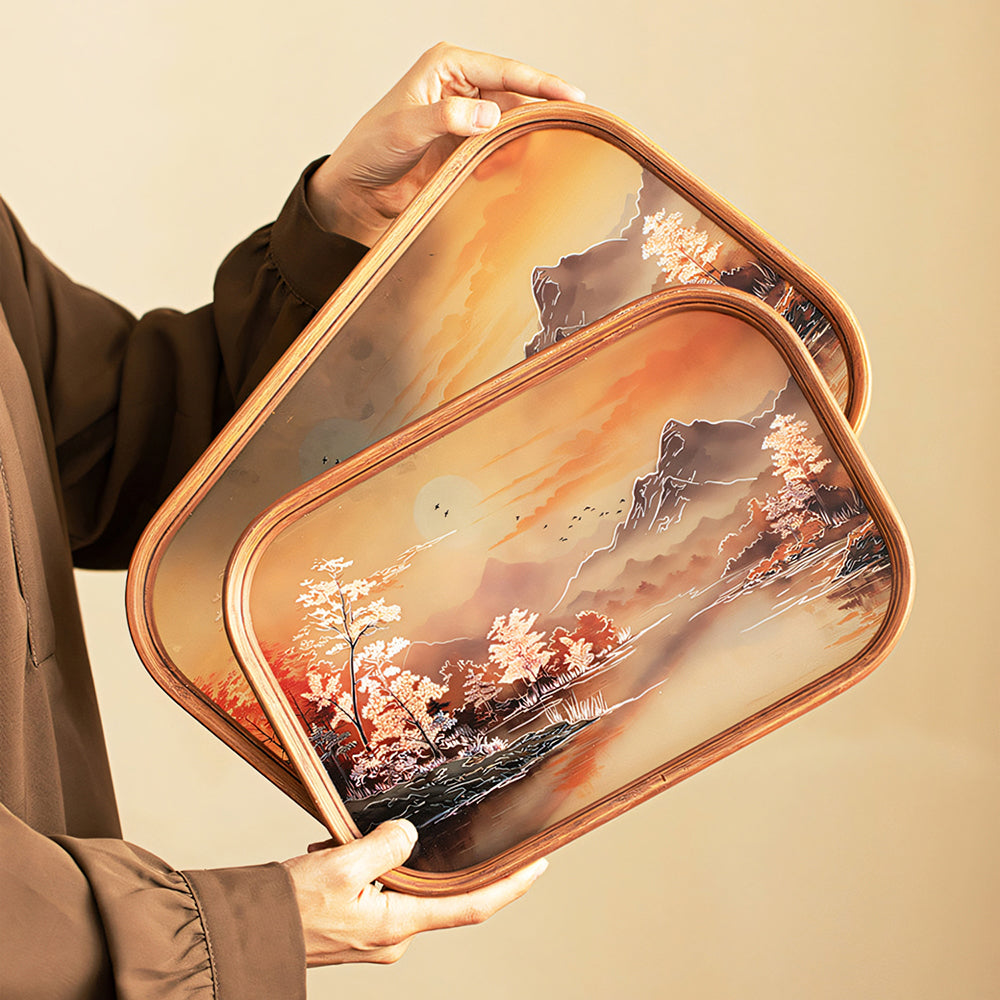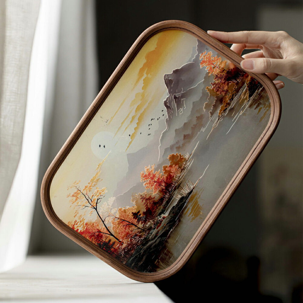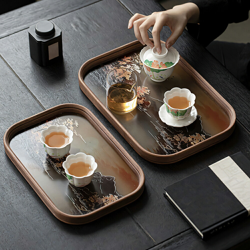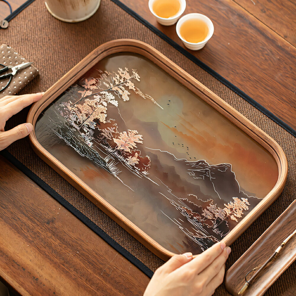 IwaiLoft ガラス トレー トレイ 天然竹 盛器 丸長角皿 お皿 小皿 豆皿 プレート カフェトレー ガラス ティートレー おしゃれ ウールナット ガラス皿 ガラス食器 ガラスプレート 収納トレイ インテリア 母の日 贈り物