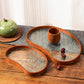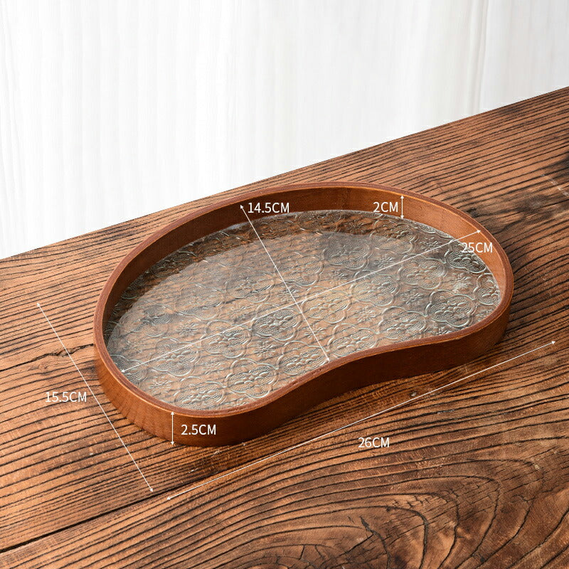 IwaiLoft 花海棠 トレー フローラガラス レトロ調 配膳トレー トレイ ガラス 盛器 月の形 お皿 小皿 豆皿 プレート 木 カフェトレー ガラス ティートレー おしゃれ ガラス皿 ガラス食器 ガラスプレート 収納インテリア