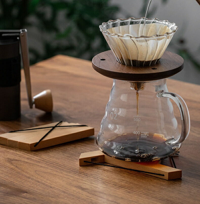 モダンで大人な雰囲気の瓶敷。丈夫で優しく美しい木目が特徴のウールナットで作られています。