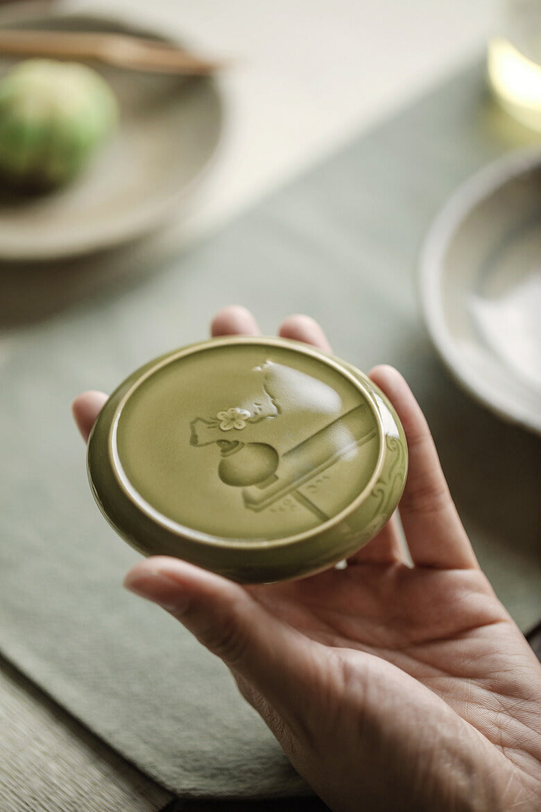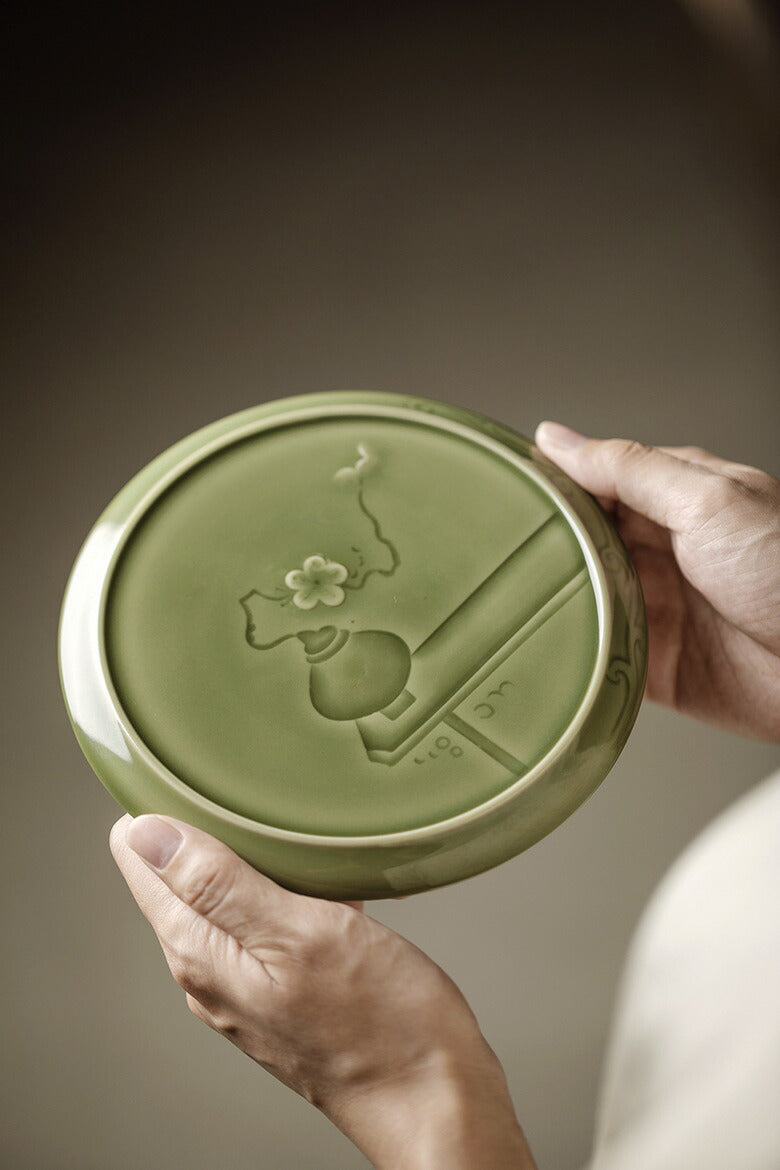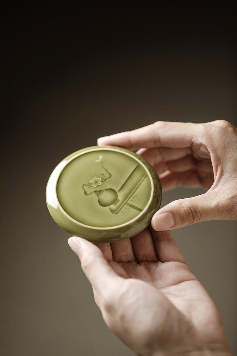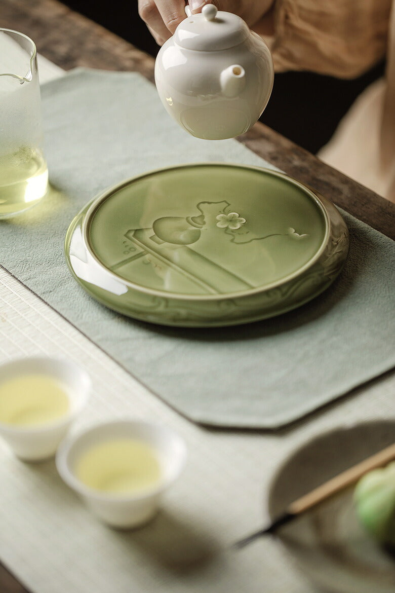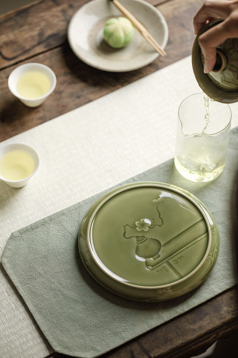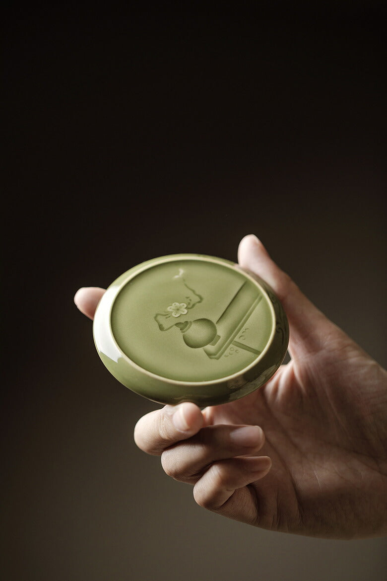 鏡花 青磁 小皿 茶敷 豆皿 コースター 緑 丸型 丸 ティートレー 茶托 茶たく 茶敷 おしゃれ カップ グラス ソーサー 受け皿 プレート ミニ トレー シノワズリ レトロ アクセサリー収納 小物入れ お家カフェ キッチン雑貨 母の日 プレゼント IwaiLoft