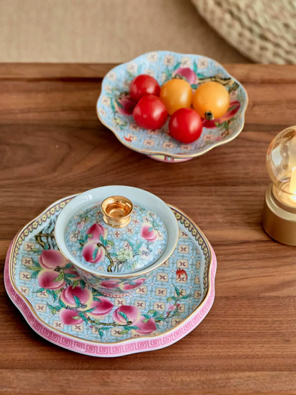思わず「可愛い!」寿桃(ショウ タオ)茶器。女性に喜ばれること間違いなし♪レトロでカラフルな桃柄が可愛らしい茶器です。パスタはもちろん、朝食にワンプレートとしても大活躍。