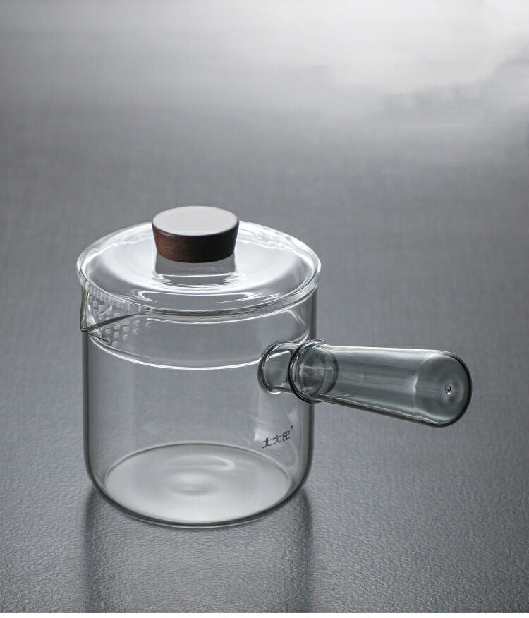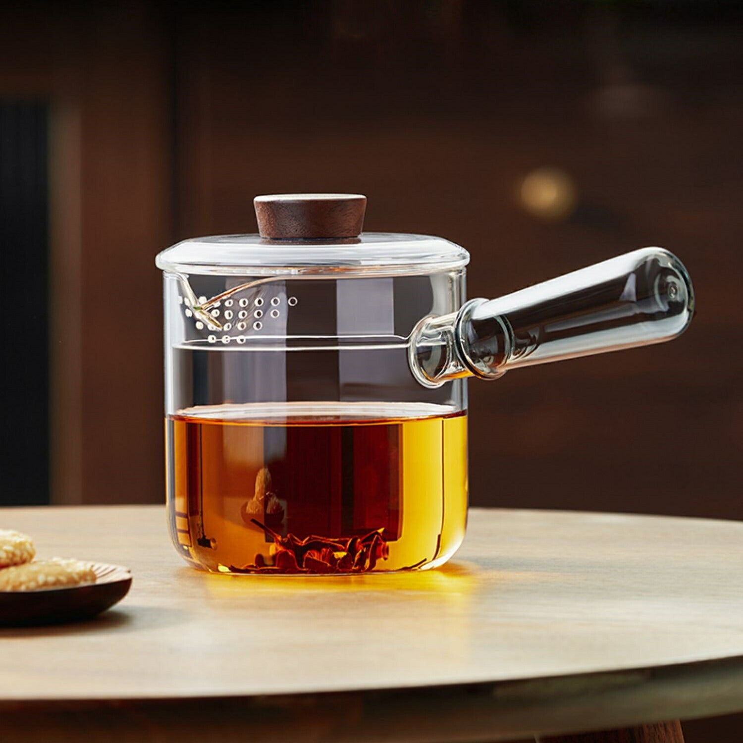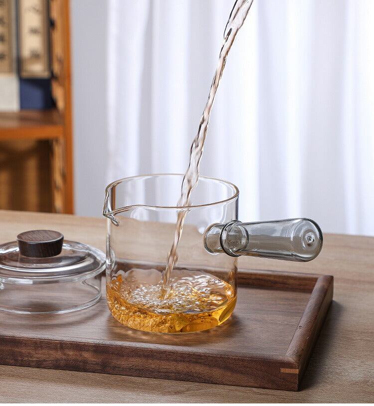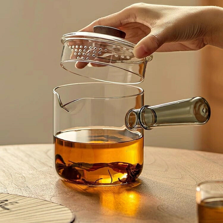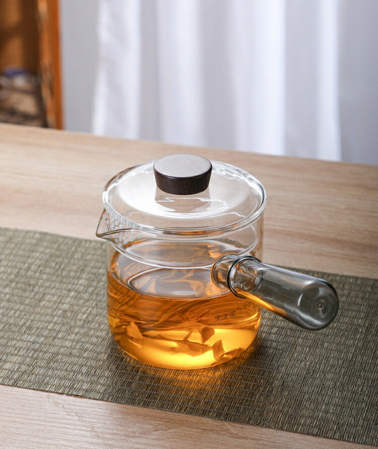 IwaiLoft 横手 ティーポット 耐熱ガラス ガラスティーポット ガラス 急須 600ml ガラスポット 平急須 広口 湯冷まし 紅茶ポット 日本茶 ルイボスティー 緑茶 リーフティーポット ハーブティーポット おすす め 直火可 ティーライフ