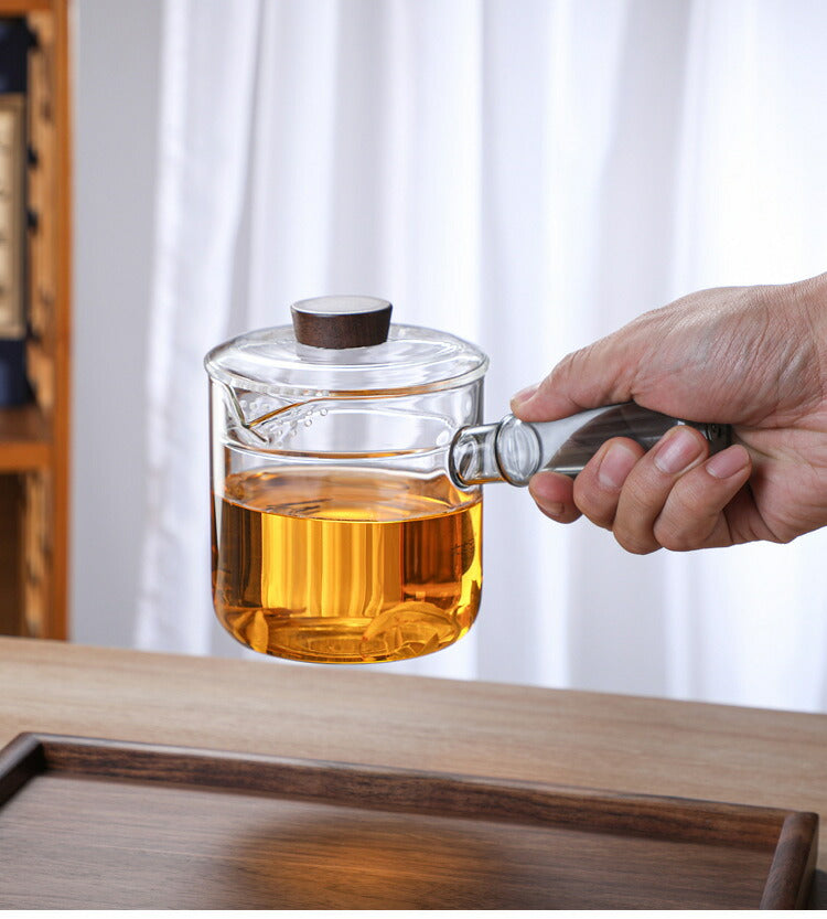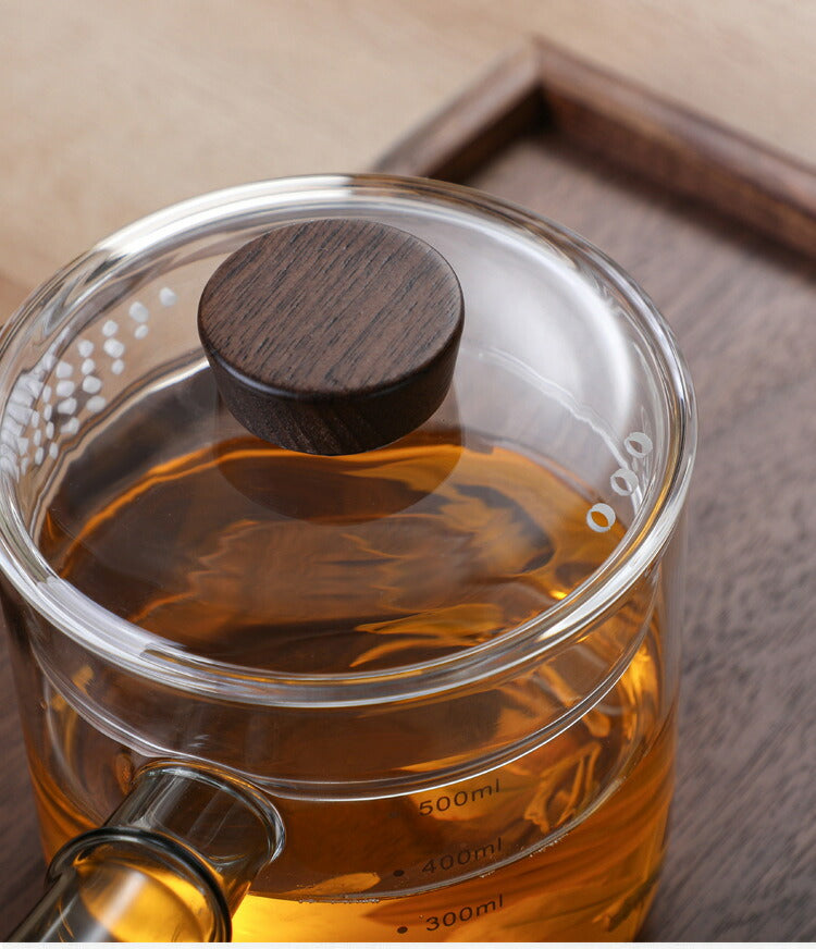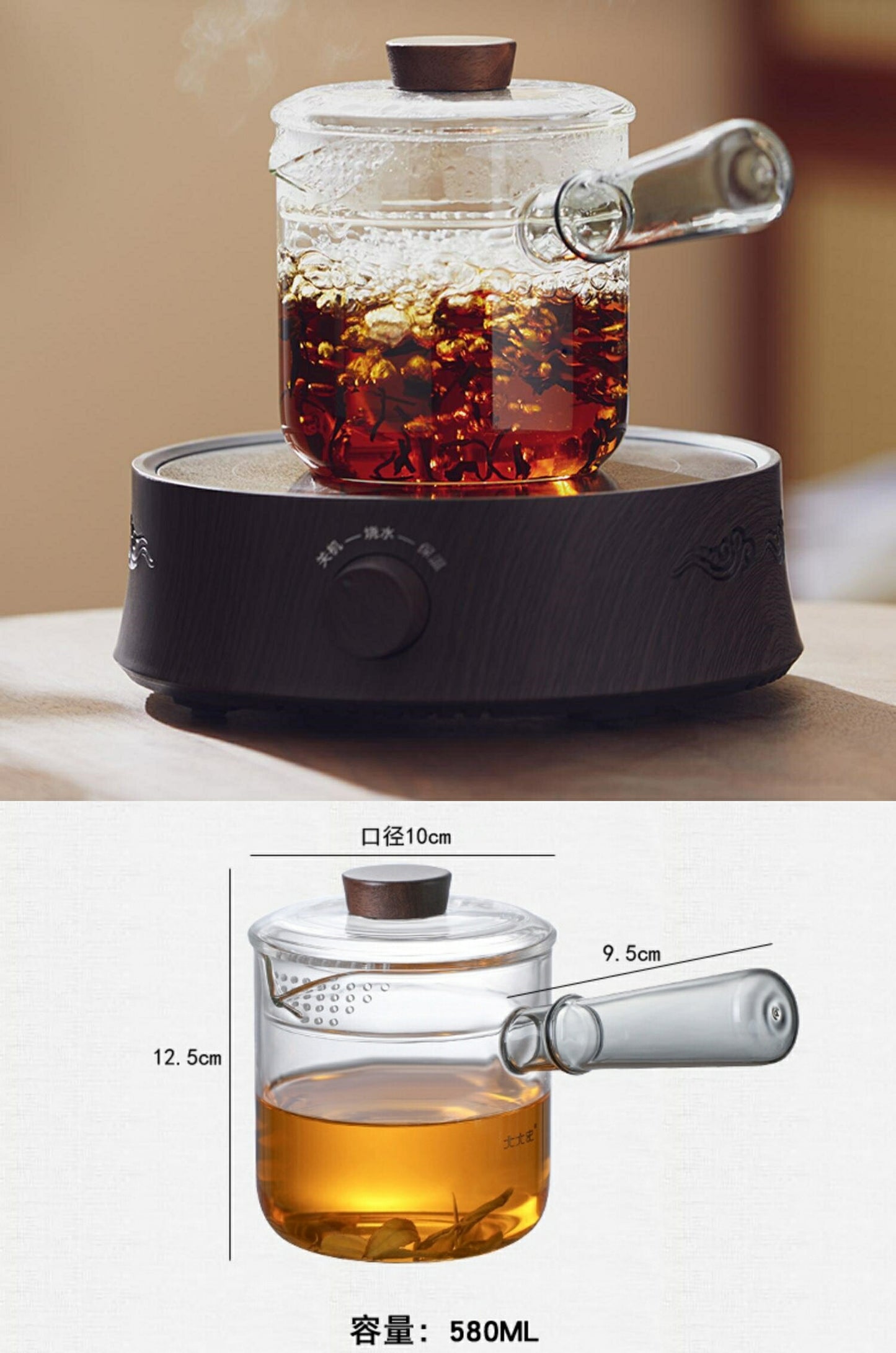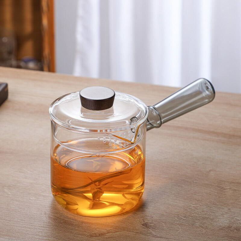 IwaiLoft 横手 ティーポット 耐熱ガラス ガラスティーポット ガラス 急須 600ml ガラスポット 平急須 広口 湯冷まし 紅茶ポット 日本茶 ルイボスティー 緑茶 リーフティーポット ハーブティーポット おすす め 直火可 ティーライフ