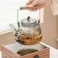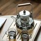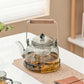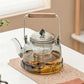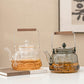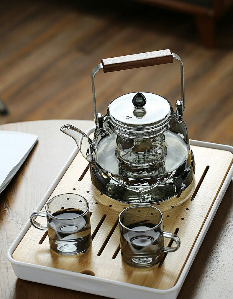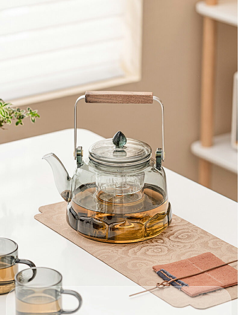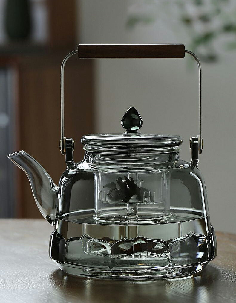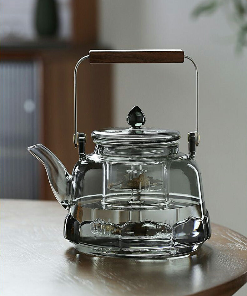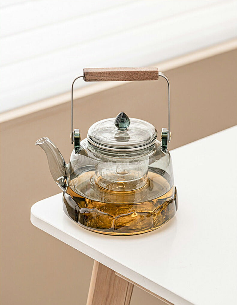 蓮の花・沈着 耐熱ティーポット ガラス 1000ml 1L ガラスティーポット 耐熱ガラス やかん 薬膳 木製の持ち手 大容量 煮出し 湯沸かし器 薬膳ポット 蓮 はす グレー 透明 ジャンピング 紅茶ポット 蒸茶 煮茶 に 直火 母の日 ギフト お茶のある暮らし お茶の時間IwaiLoft