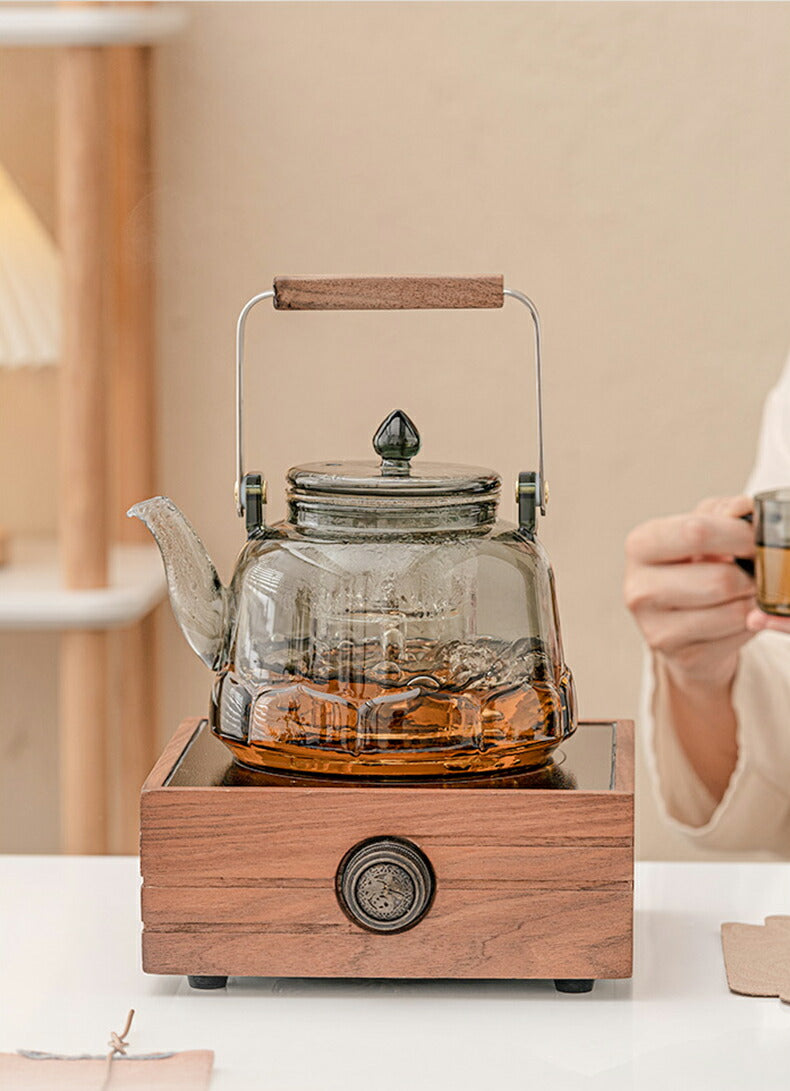 蓮の花をモチーフにした耐熱ティーポットは、ガラス製で透明感があり、1Lの大容量が特徴です。木製の持ち手が温かみを加え、直火での使用も可能なため、薬膳茶や紅茶の煮出しに最適です。シンプルで美しいデザインは、日常のお茶の時間を特別なものに変えます。母の日のギフトとしても喜ばれることでしょう。お茶のある暮らしを豊かにする一品です。
