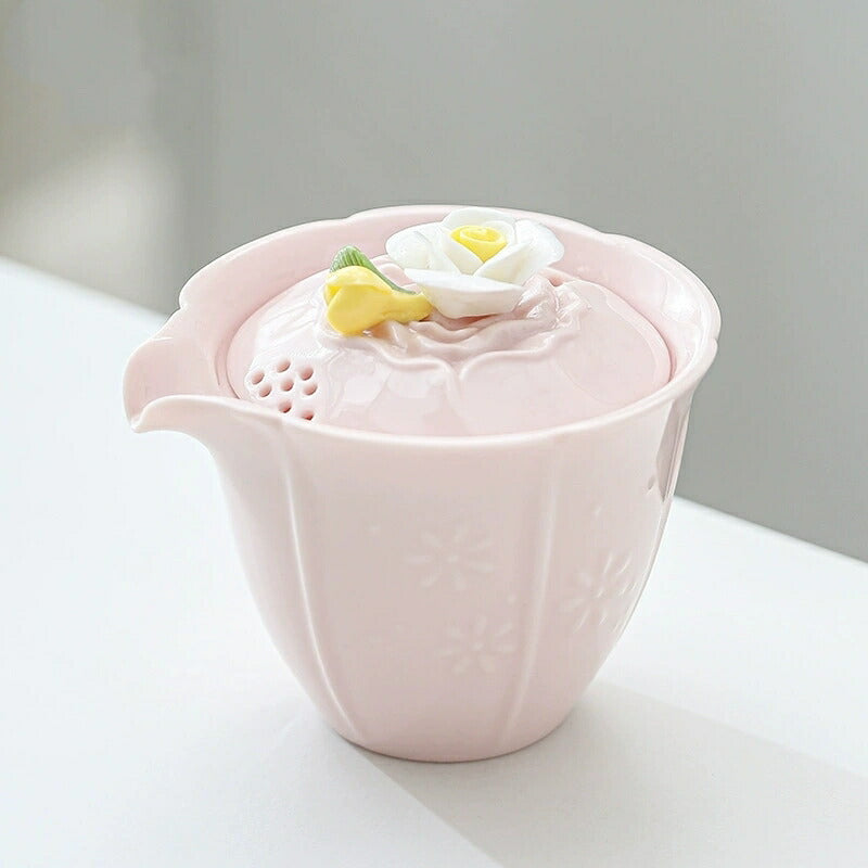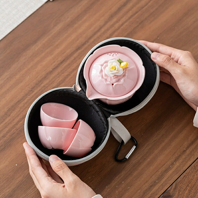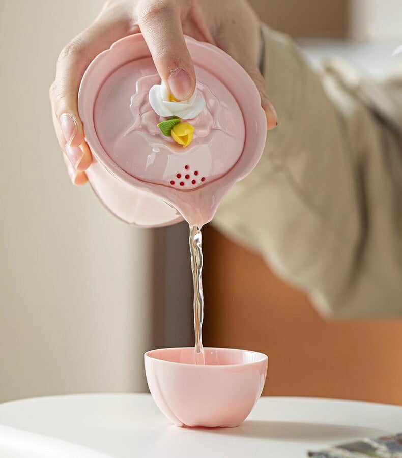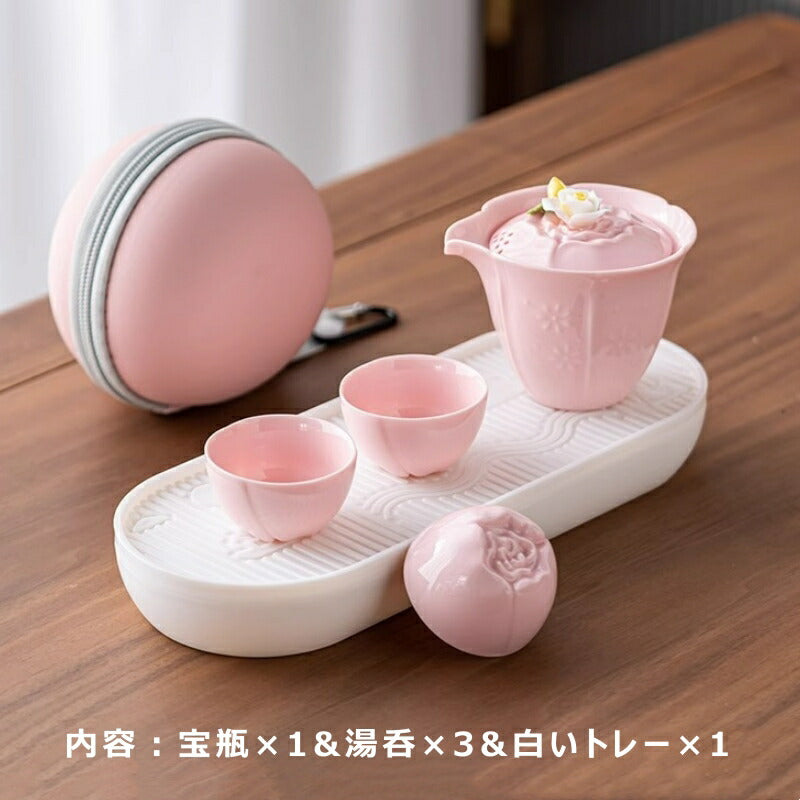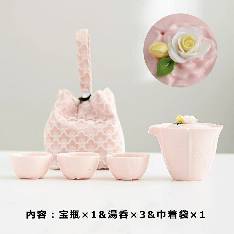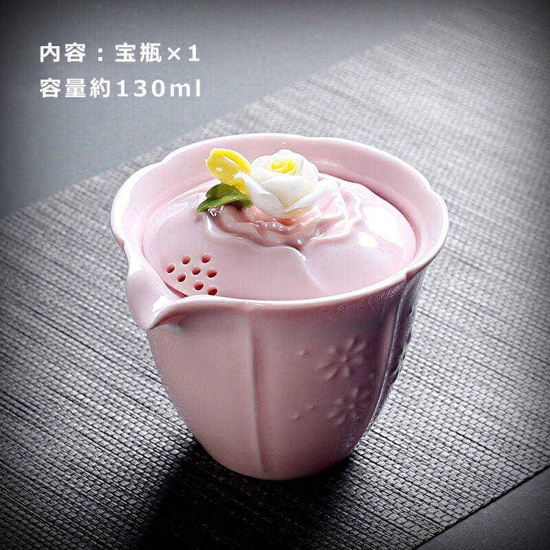 美しい花 急須 湯呑 宝瓶 ピンク お茶ポット ローズ バラの花 枯れないお花 煎茶 茶器 茶碗 片口 ティートレー ティーグラス 蓋碗 中国茶器 旅持ち 茶器セット 携帯 アウトドア 旅 ティーセット 台湾茶 ウーロン茶 紅茶 ポット 茶芸 IwaiLoft