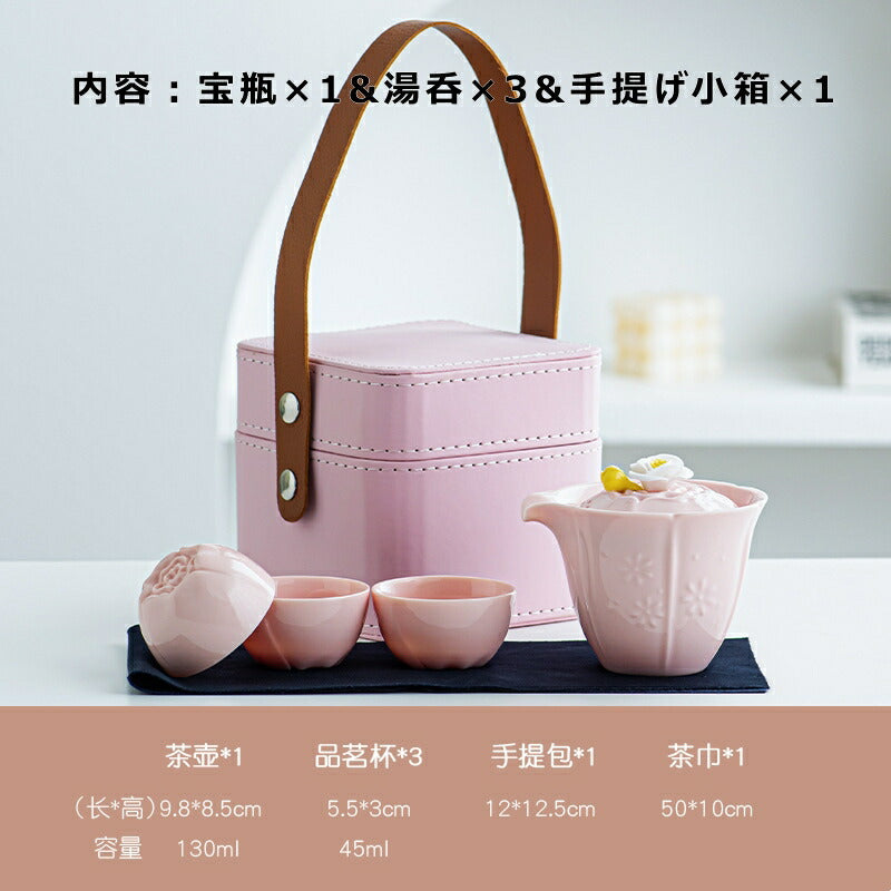 家でのリラックスタイム、友人とのお茶会、または旅行先でのひとときに、この茶器セットを使って、上質なお茶の時間をお楽しみください。美しさと実用性を兼ね備えたこのセットは、あなたの日常に小さな豊かさをもたらします。