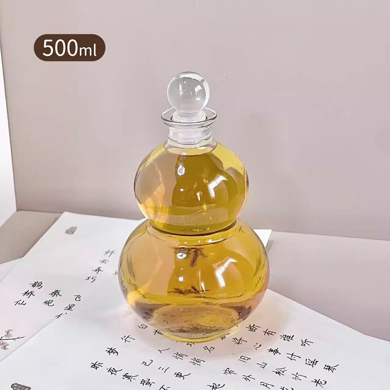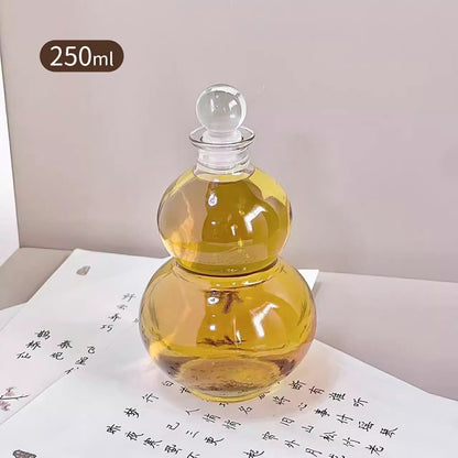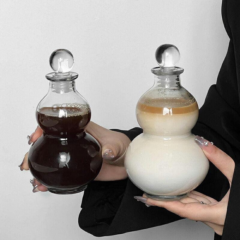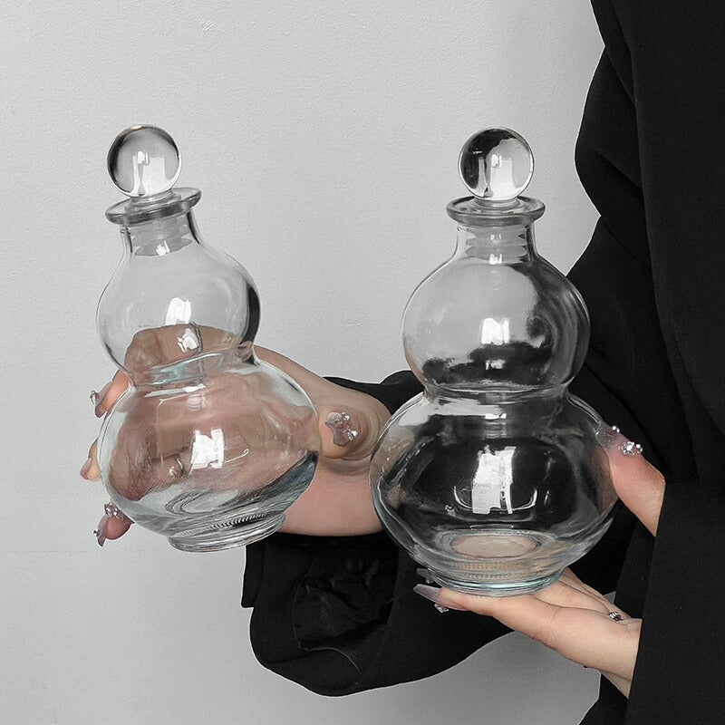 【瓢箪】縁起が良い ひょうたん 蓋付き ガラス瓶 ガラスポット 丸 水出しポット ワインボトル型 透明 250ml 500ml 紅茶煎茶 緑茶 氷出し 水出し煎茶 冷茶ポット 冷茶ボトル 囲炉煮茶 ガラス器 酒ガラスびん 酒瓶 ワイン瓶 空瓶 果実酒びん 小 仕分け ガラス容器 IwaiLoft