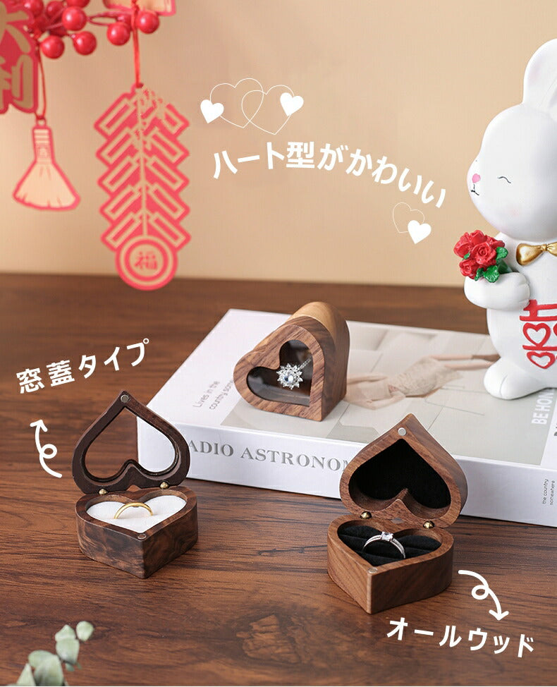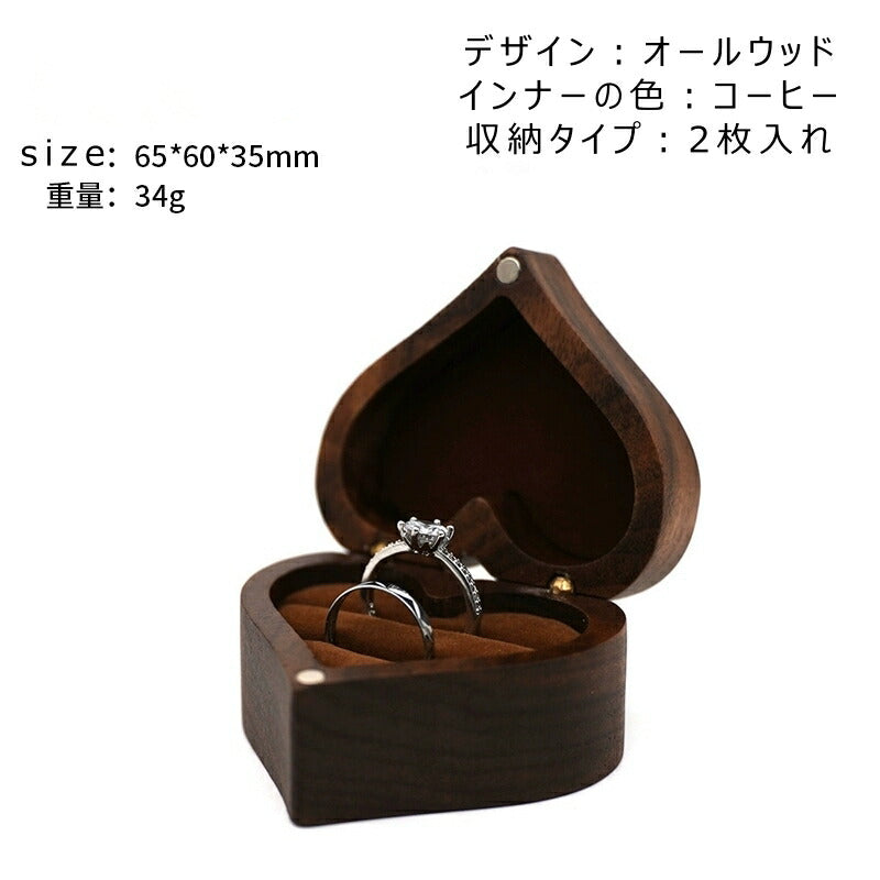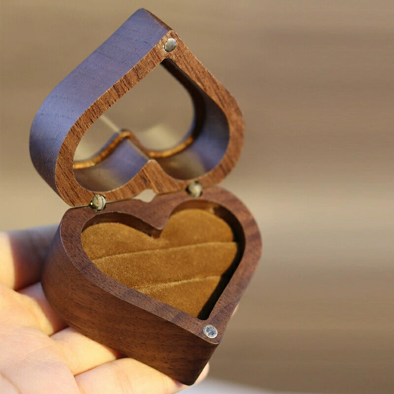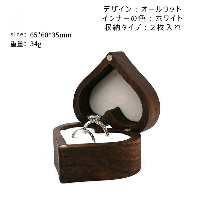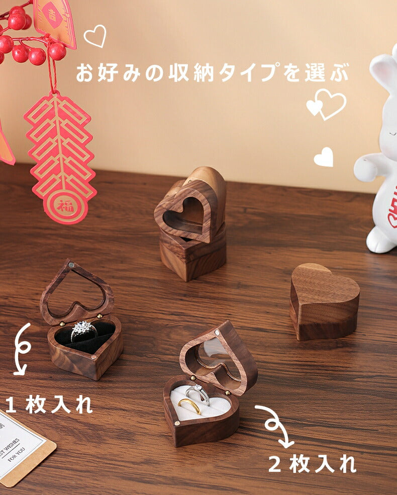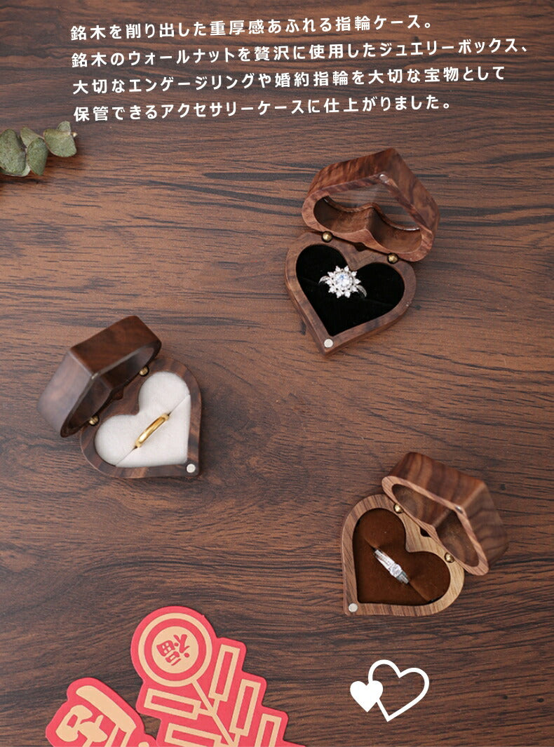 かわいい ハート型 指輪ケース リングケース 木製 小 指輪 収納 高級 小さい ミニサイズ おしゃれ アクセサリーケース ウールナット 婚約指輪入れ 婚約指輪収納 持ち運び リングボックス 携帯 外出 旅行便利 結婚式 結婚お祝い 母の日 プレセント 誕生日 ギフト IwaiLoft