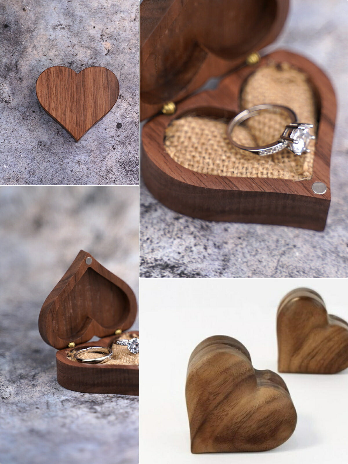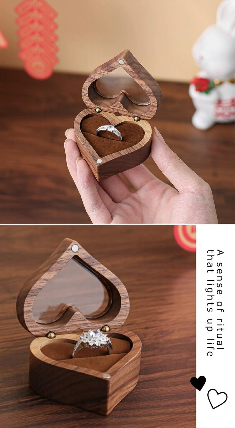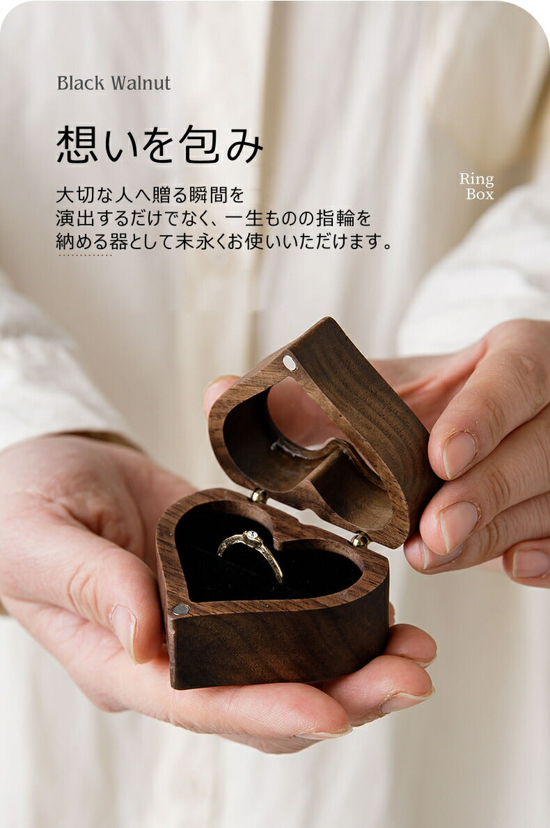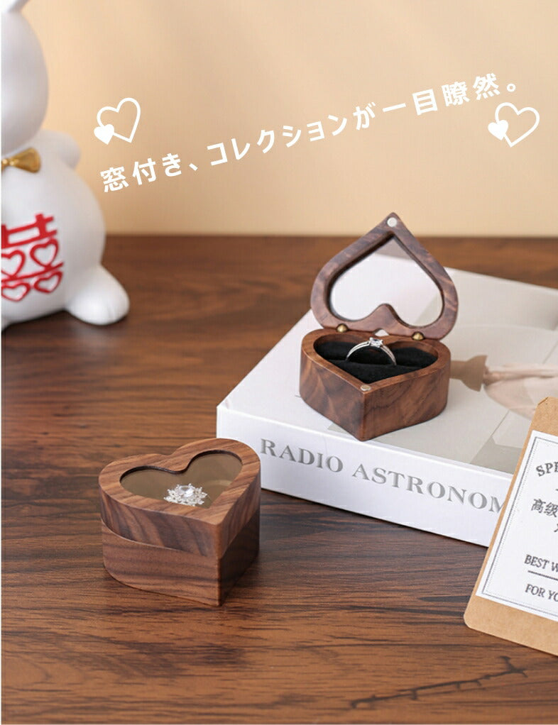 かわいい ハート型 指輪ケース リングケース 木製 小 指輪 収納 高級 小さい ミニサイズ おしゃれ アクセサリーケース ウールナット 婚約指輪入れ 婚約指輪収納 持ち運び リングボックス 携帯 外出 旅行便利 結婚式 結婚お祝い 母の日 プレセント 誕生日 ギフト IwaiLoft
