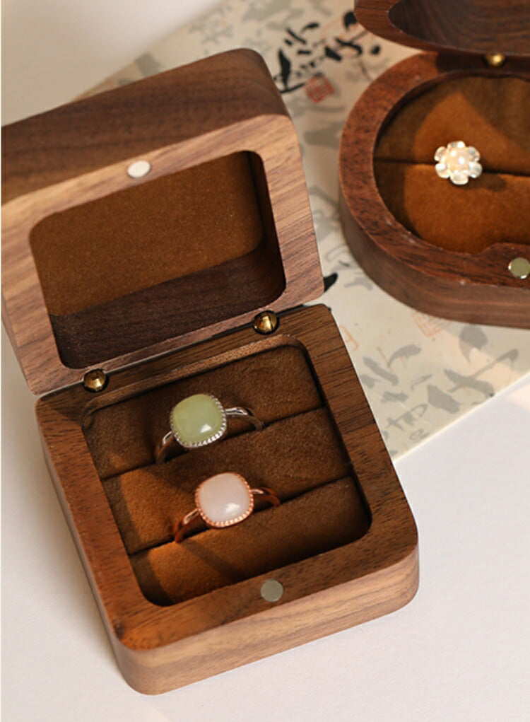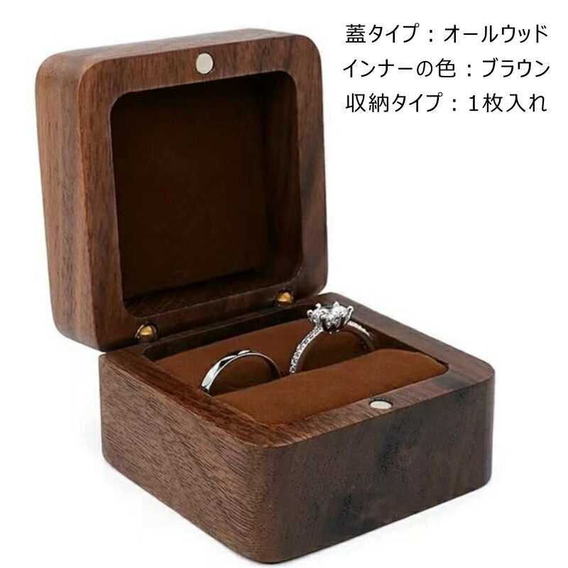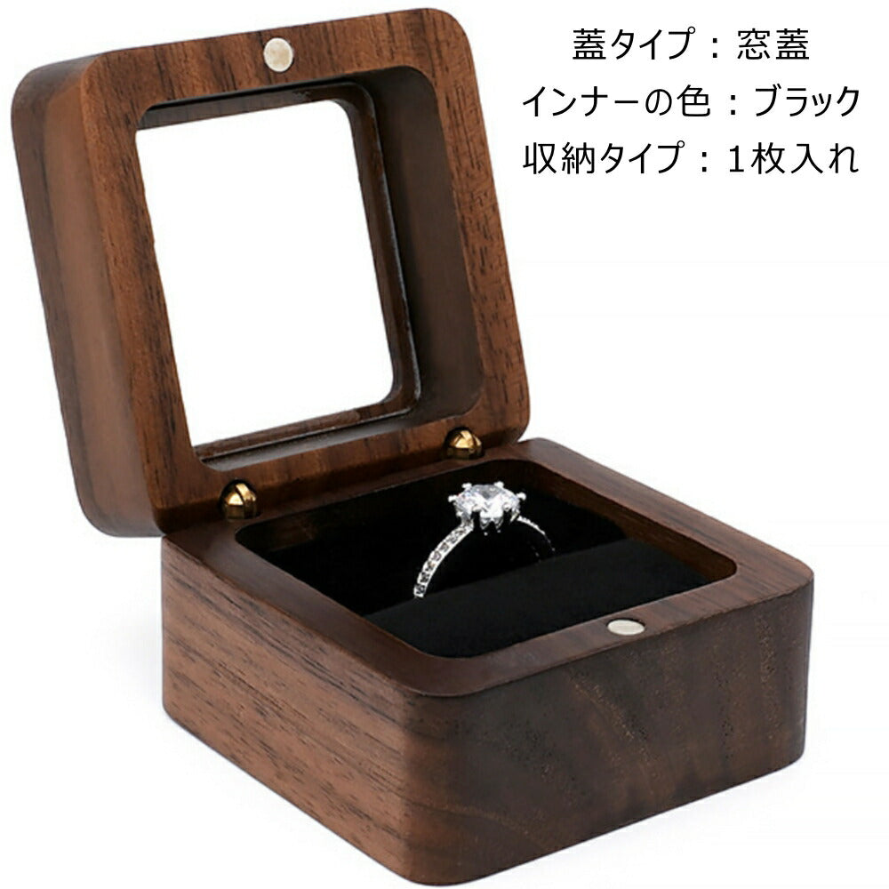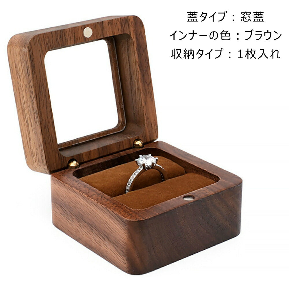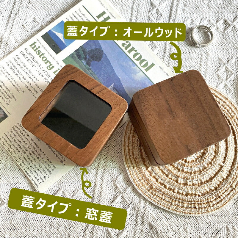 かわいい 指輪ケース リングケース 木製 窓付き Ring Case ピアスケース 小 四方 正方形 ウールナット アクセサリーケース ジュェリーボックス ジュェリーケース 婚約指輪入れ 婚約指輪収納 持ち運び リングボックス 携帯 外出 旅行便利 結婚 お祝い プレセント IwaiLoft