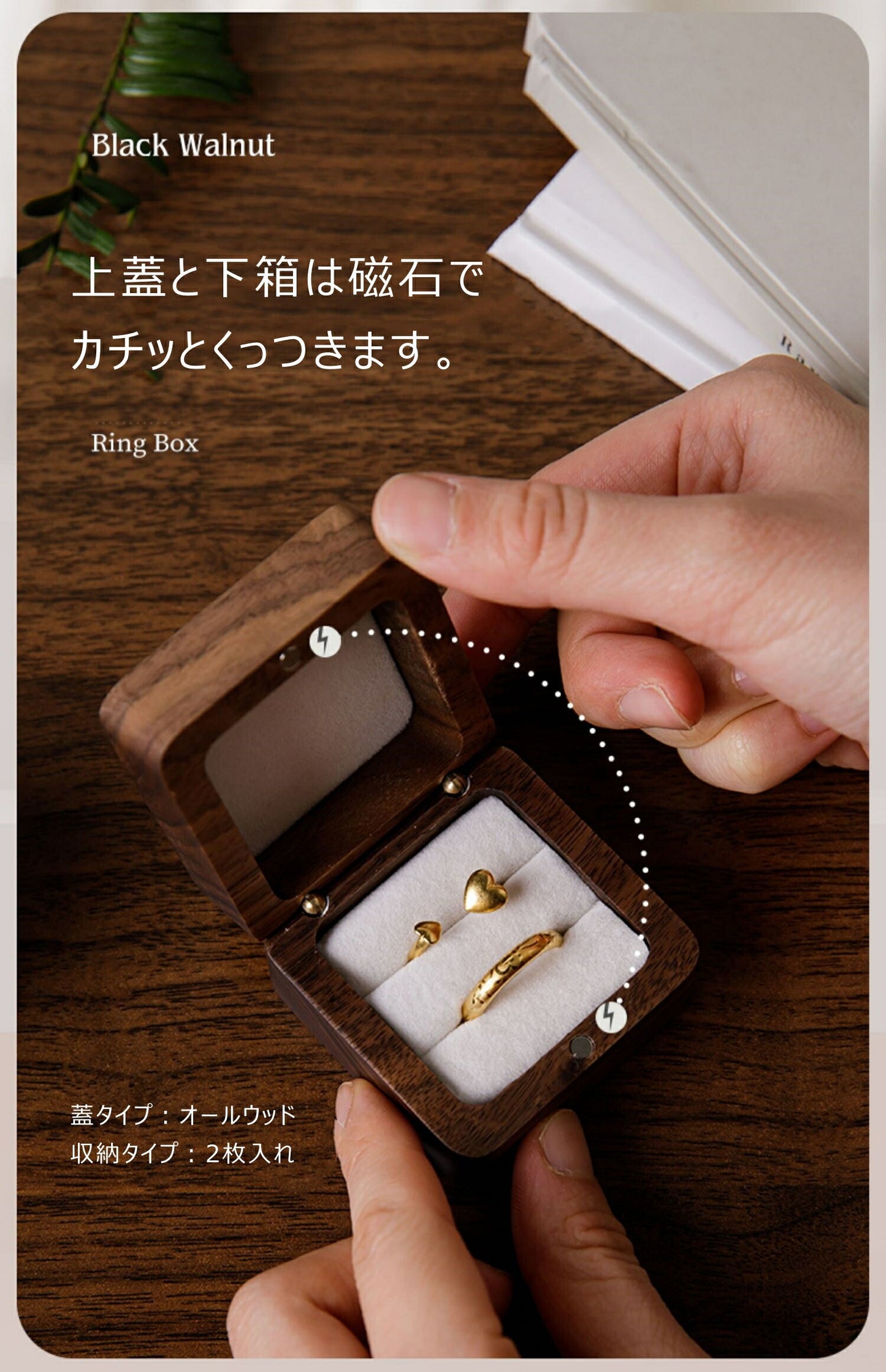 指輪ケース IwaiLoftは、その洗練されたデザインと機能性で、大切な瞬間をさらに特別なものにします。この木製リングケースは、高級感溢れる素材とコンパクトな設計が魅力です。小さいながらもしっかりとした作りで、婚約指輪や結婚指輪など、大切なリングを安全に保管できます。