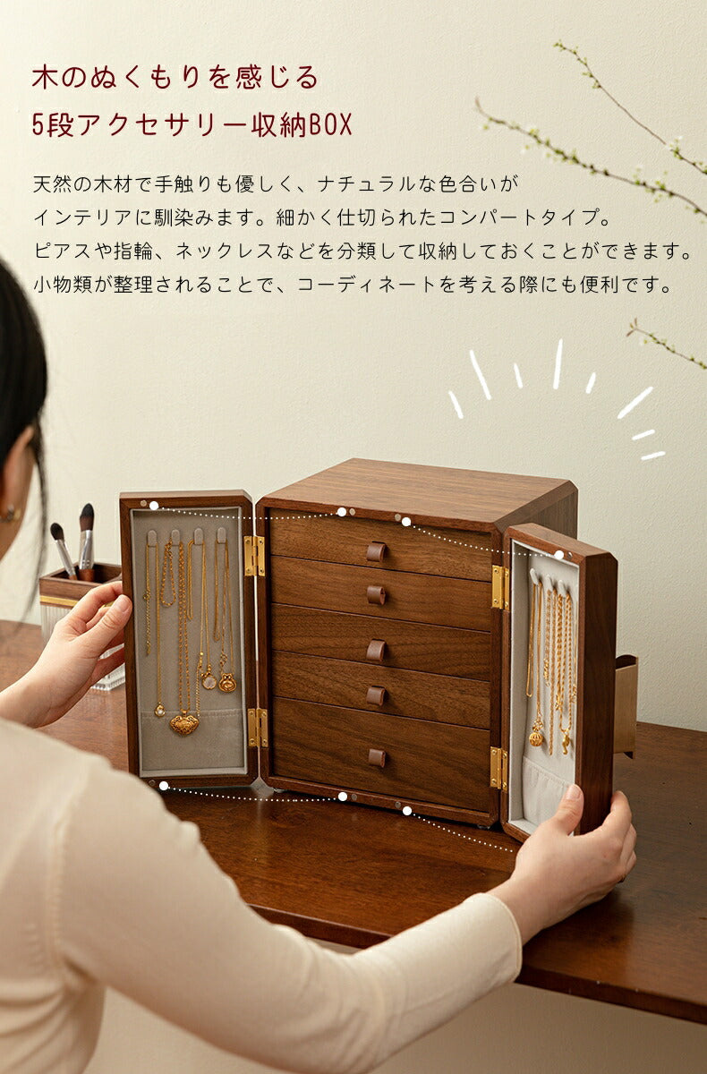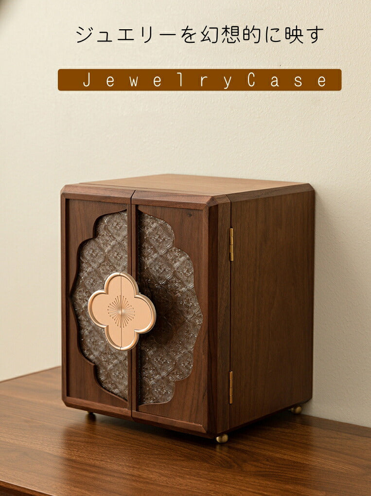 高級&儀式感 ジュエリーボックス アクセサリーケース 大容量 仕切り調整 5段 木製 ウールナット フローラガラス ウォッチボックス ウッドケース おしゃれ 宝石箱アクセサリー 収納 ケース 指輪 リング/ピアス/ネックレス/メガネ/時計収納 小物収納 母の日プレゼント IwaiLoft