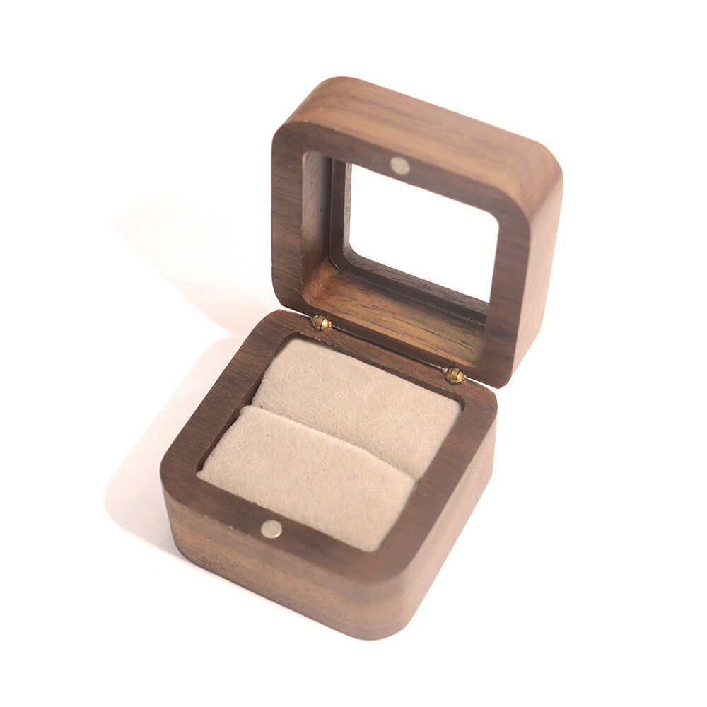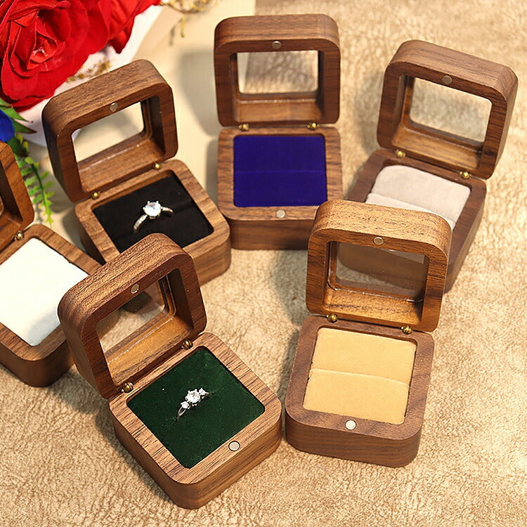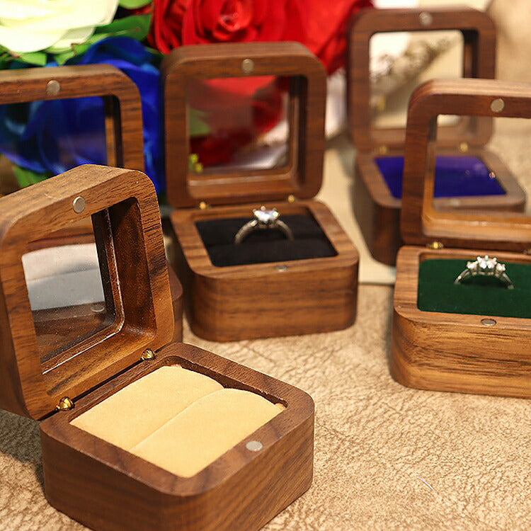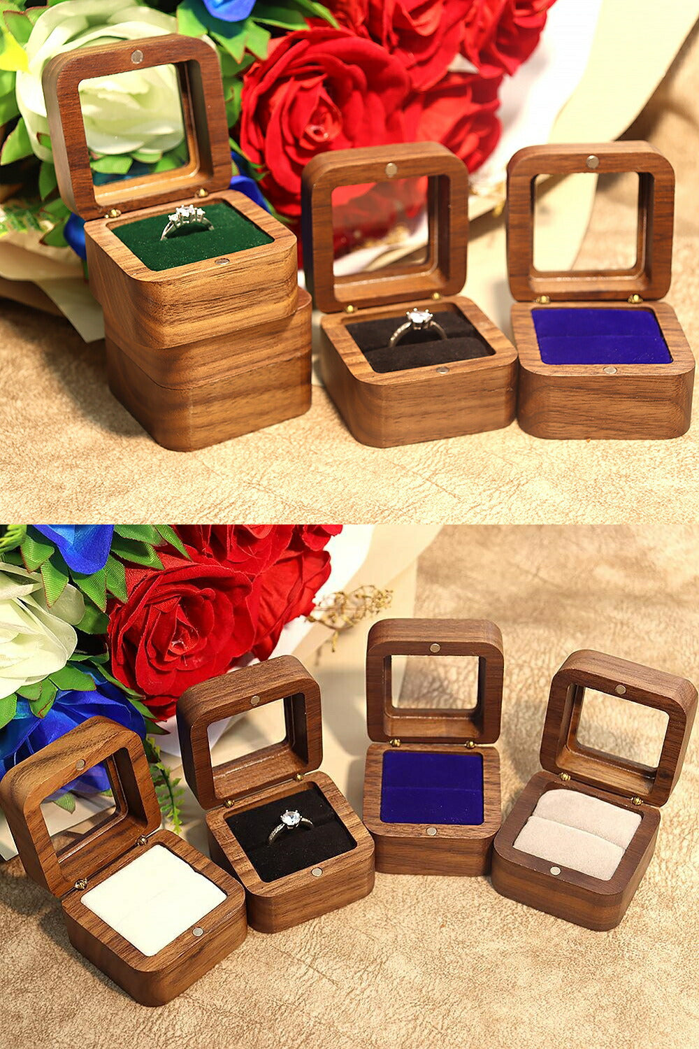 天然木 指輪ケース 窓付き リングケース 木製 収納 高級 小さい 一枚入れ ミニサイズ アクセサリーケース おしゃれ 婚約指輪入れ 婚約指輪収納 持ち運び リングボックス 携帯 外出 旅行便利 結婚式 結婚お祝い プレセント IwaiLoft