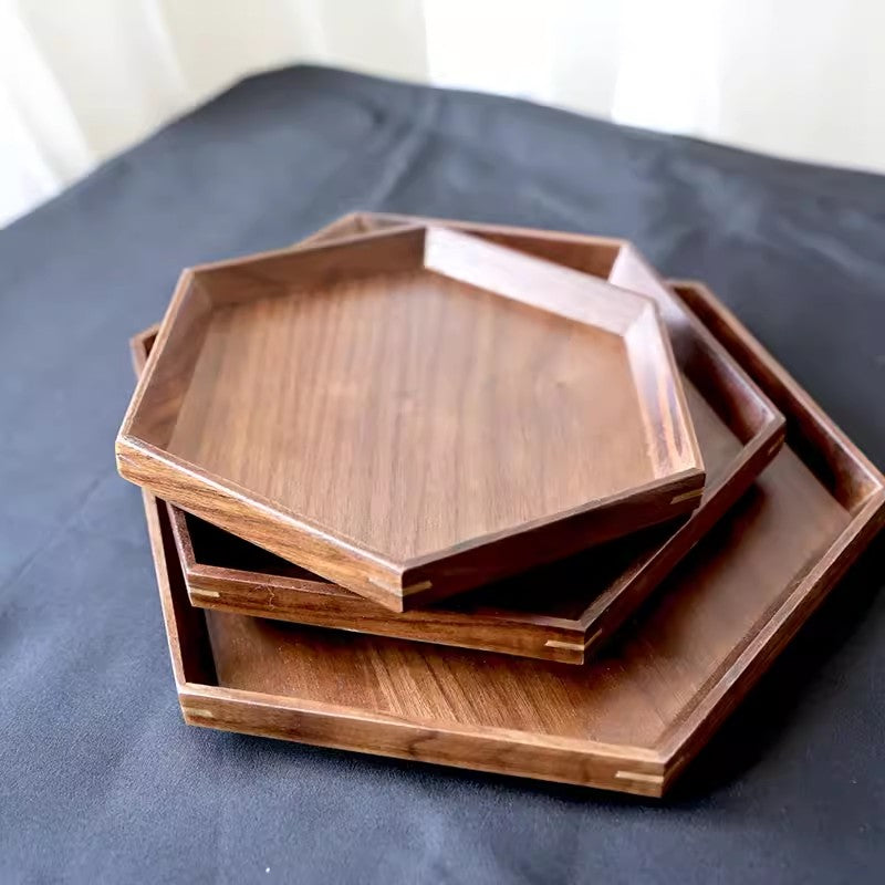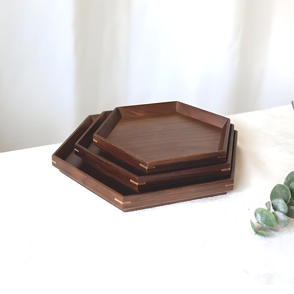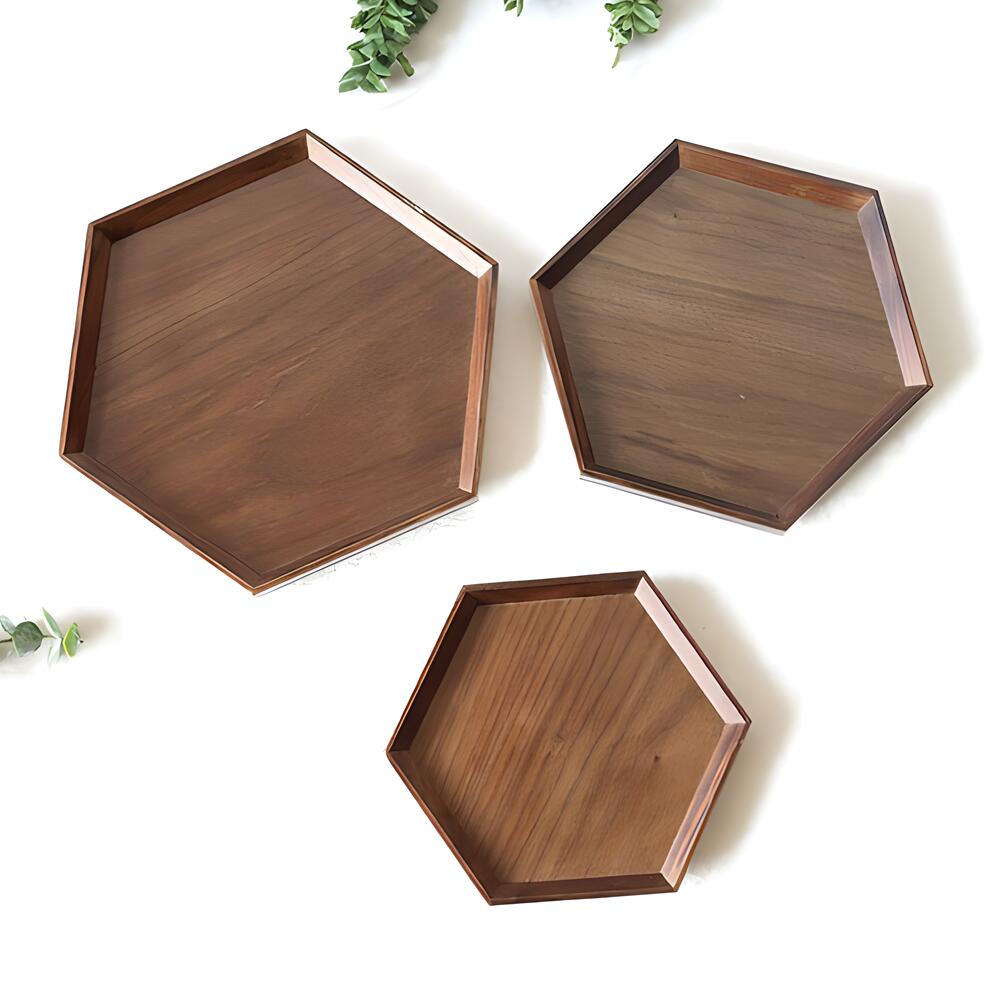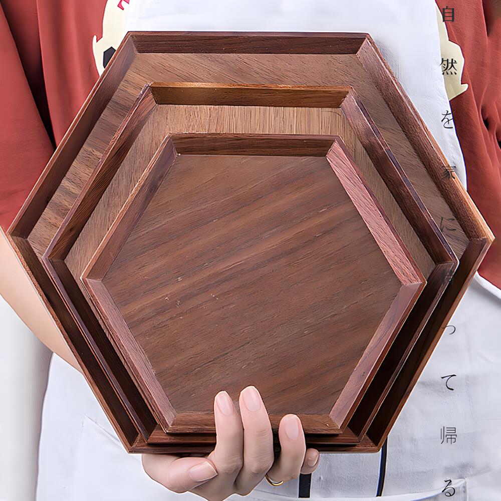 IwaiLoft 木製 トレー お盆 天然木製 羽反 六方 六角形 お盆 カフェトレー トレイ 小物収納 文房具収納トレイ ウッドトレーランチョンマット 塗無装 ナチュラル 高級感 ウールナット材