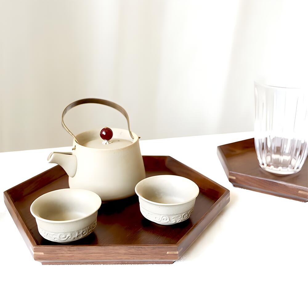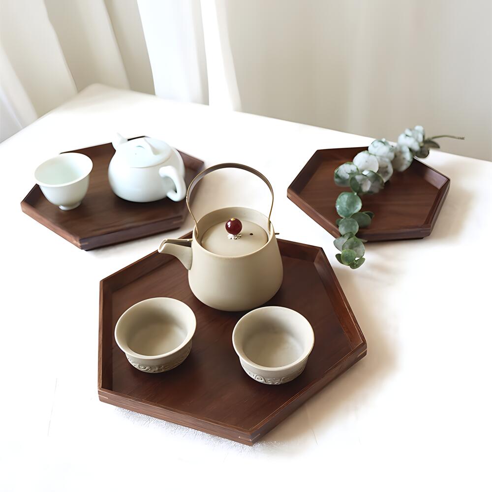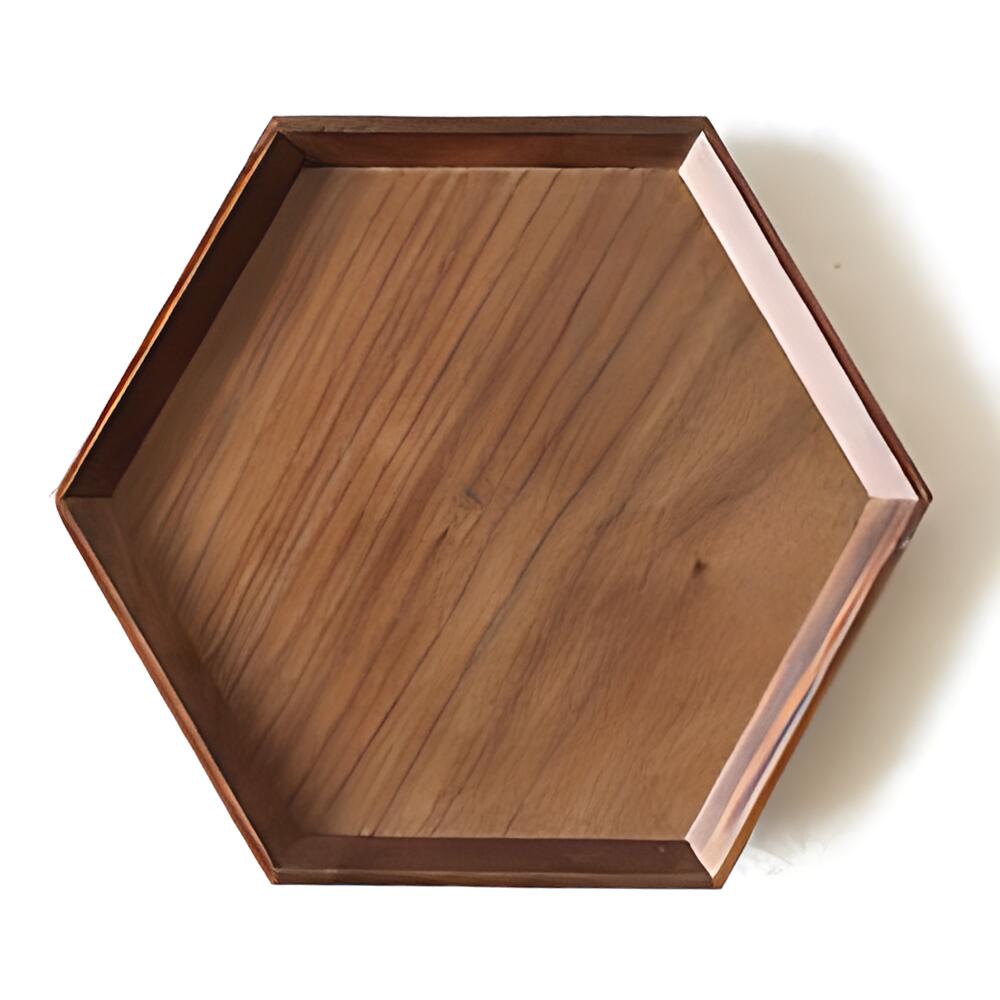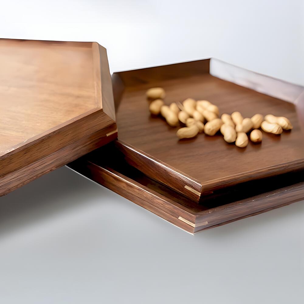 IwaiLoft 木製 トレー お盆 天然木製 羽反 六方 六角形 お盆 カフェトレー トレイ 小物収納 文房具収納トレイ ウッドトレーランチョンマット 塗無装 ナチュラル 高級感 ウールナット材