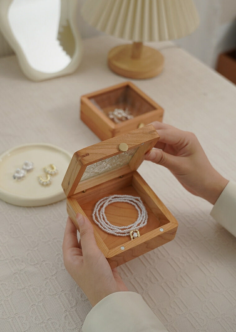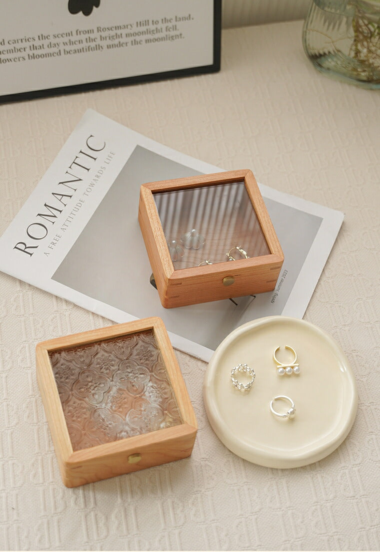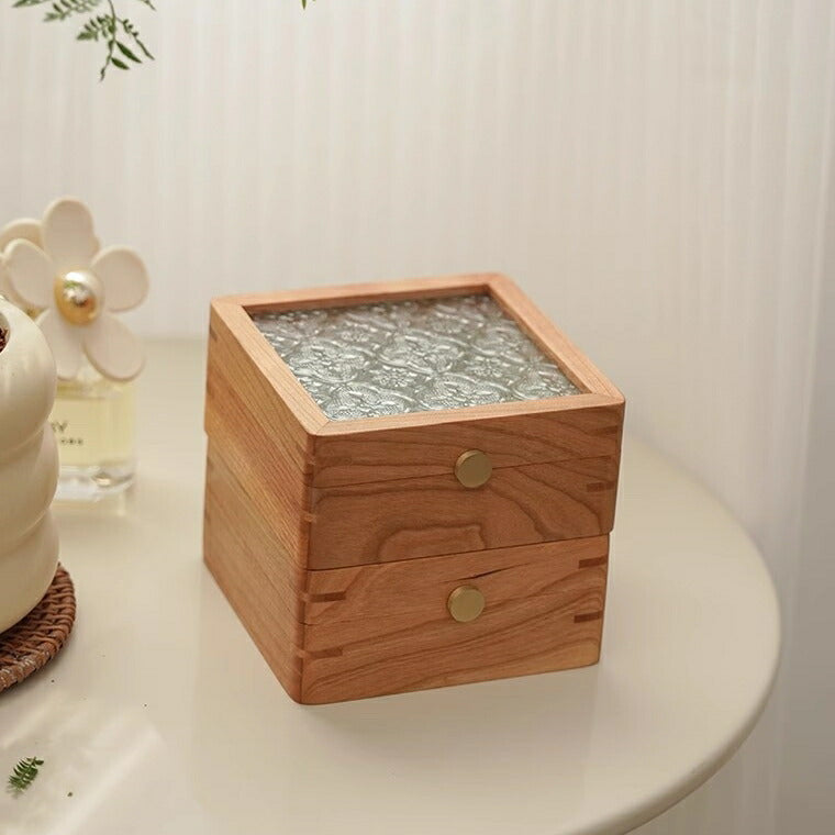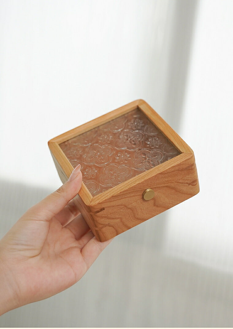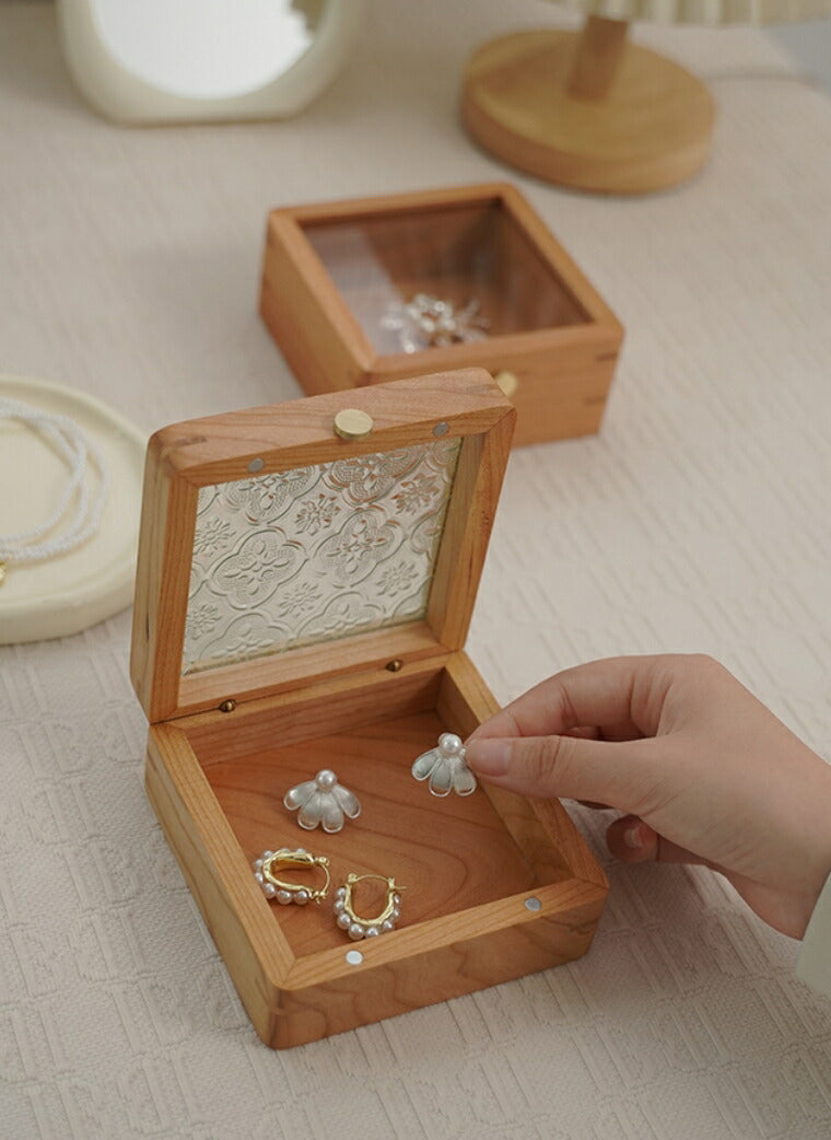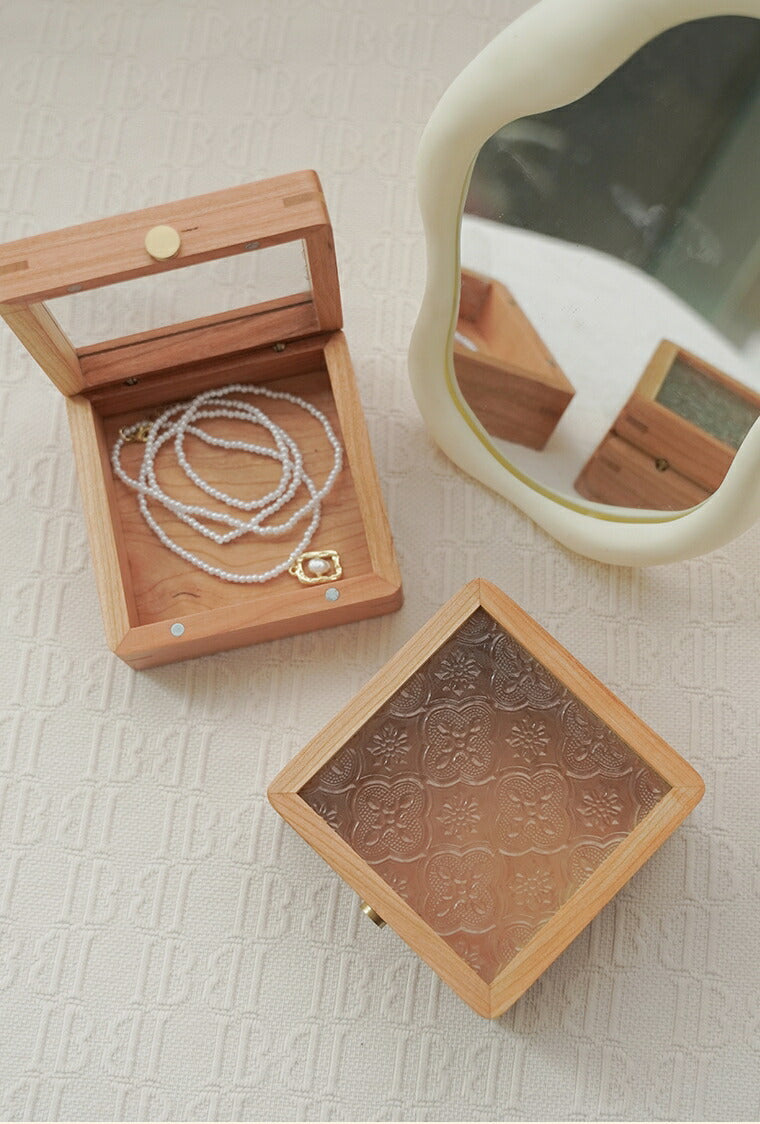 フローラガラス 収納ケース 木製 木箱 ウッドケース 天然木 ナチュラル 卓上ケース 小物収納 ビッチウッド ナチュラル 正方形 小物ボックス 小物ケース おしゃれ チェーンリング 翡翠 指輪ケース アクセサリーボックス アクセサリー収納ケース 道具箱 サニタリー収納IwaiLoft