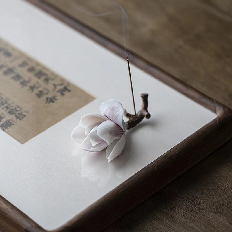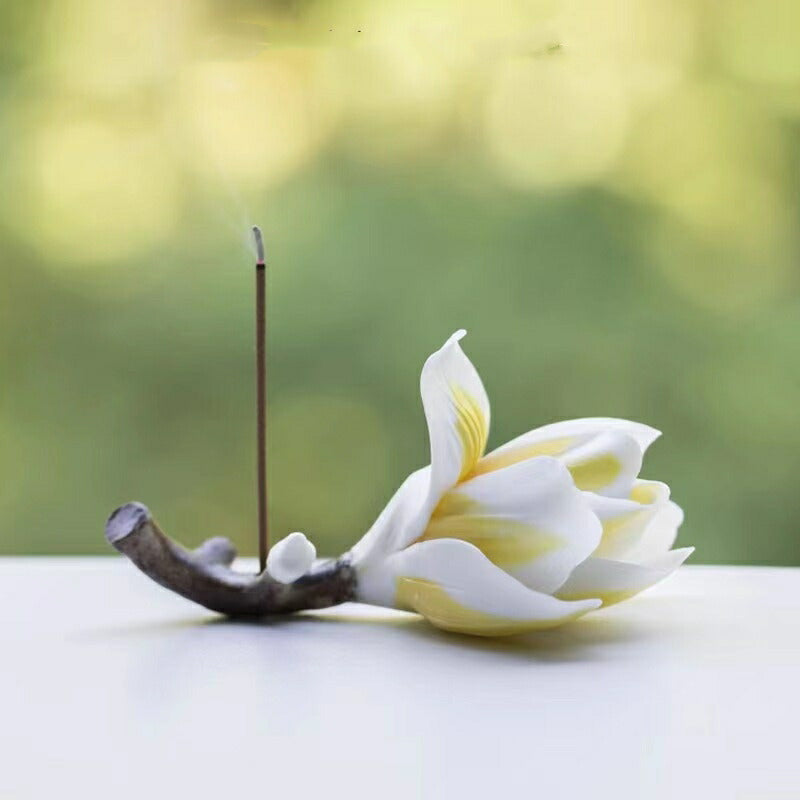 IwaiLoft 美しい花 お香・線香立て お香立て ジャスミンの花 茉莉 香立 お香置き 置物 陶磁器 花のオブジェ インテリア 鎮紙 文房具 茶道具 茶遊 雑貨 工芸品 縁起物 母の日 開運 誕生日 贈り物 癒し