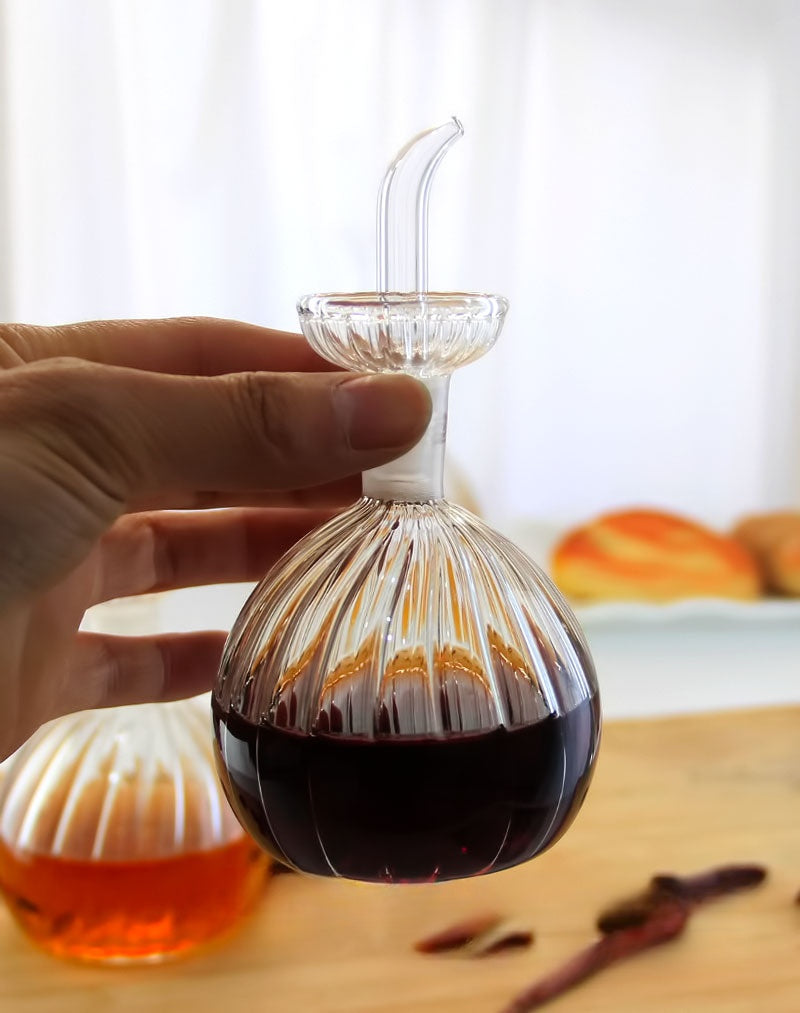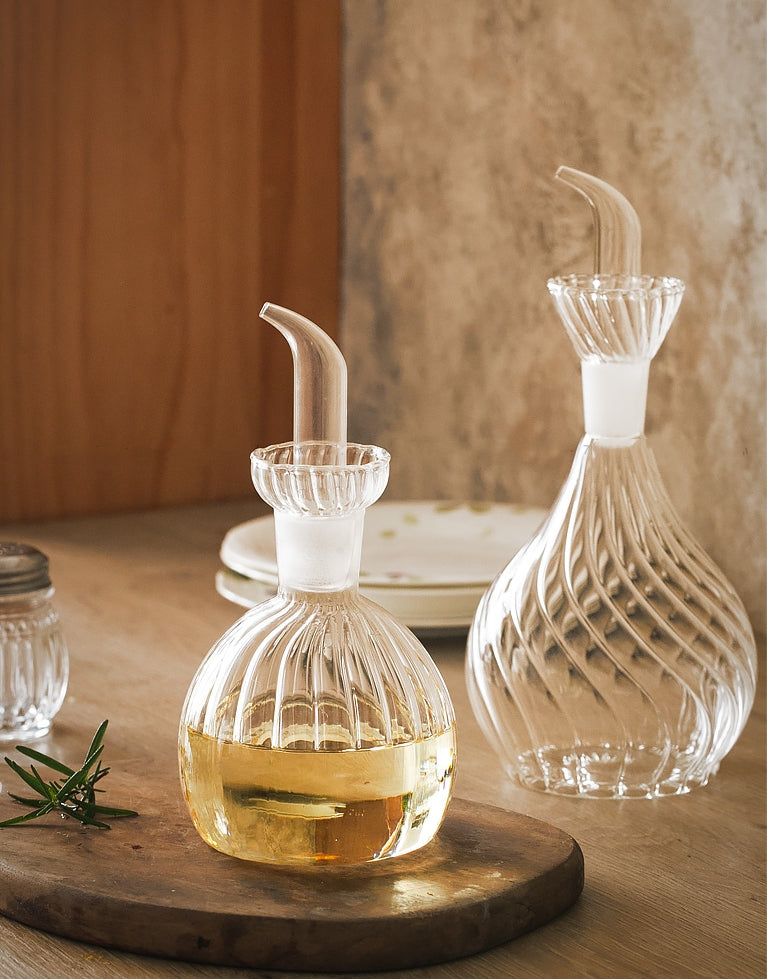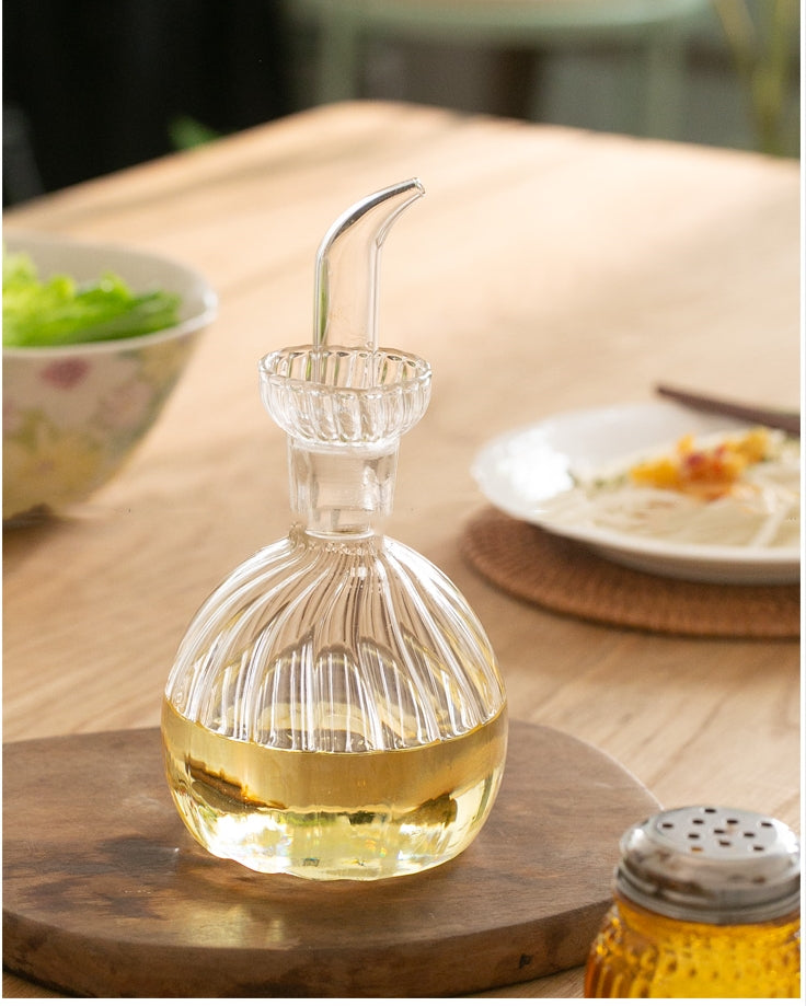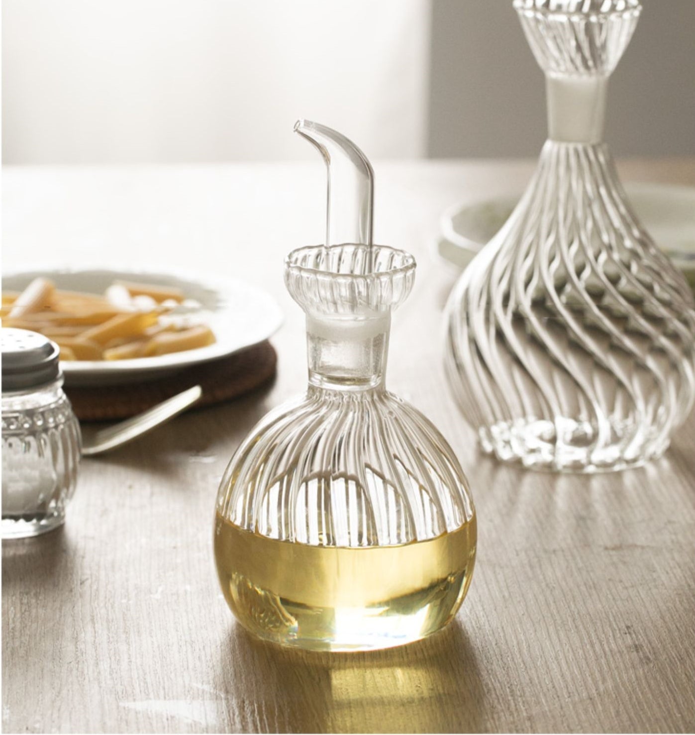食卓を美しく清潔で機能的に♪耐熱ガラスだからできる万能型 オイルポット フタ付き清潔&オシャレ♪