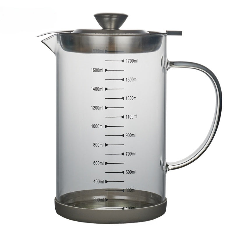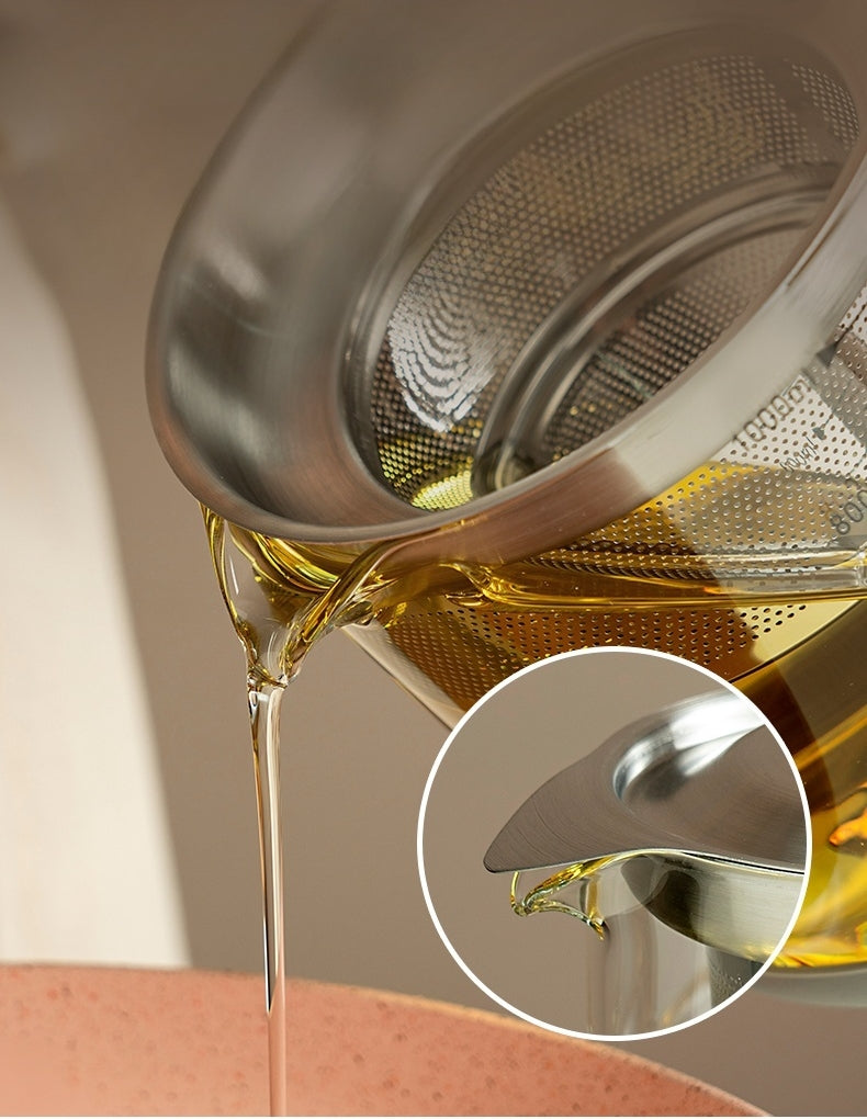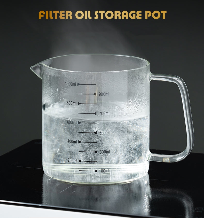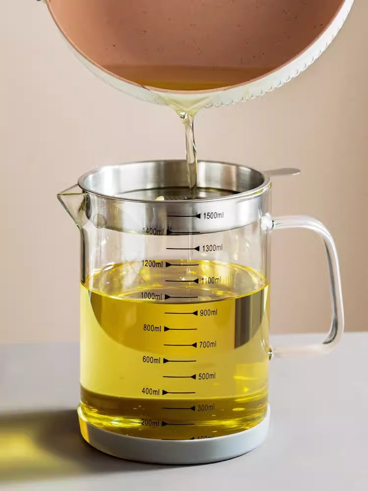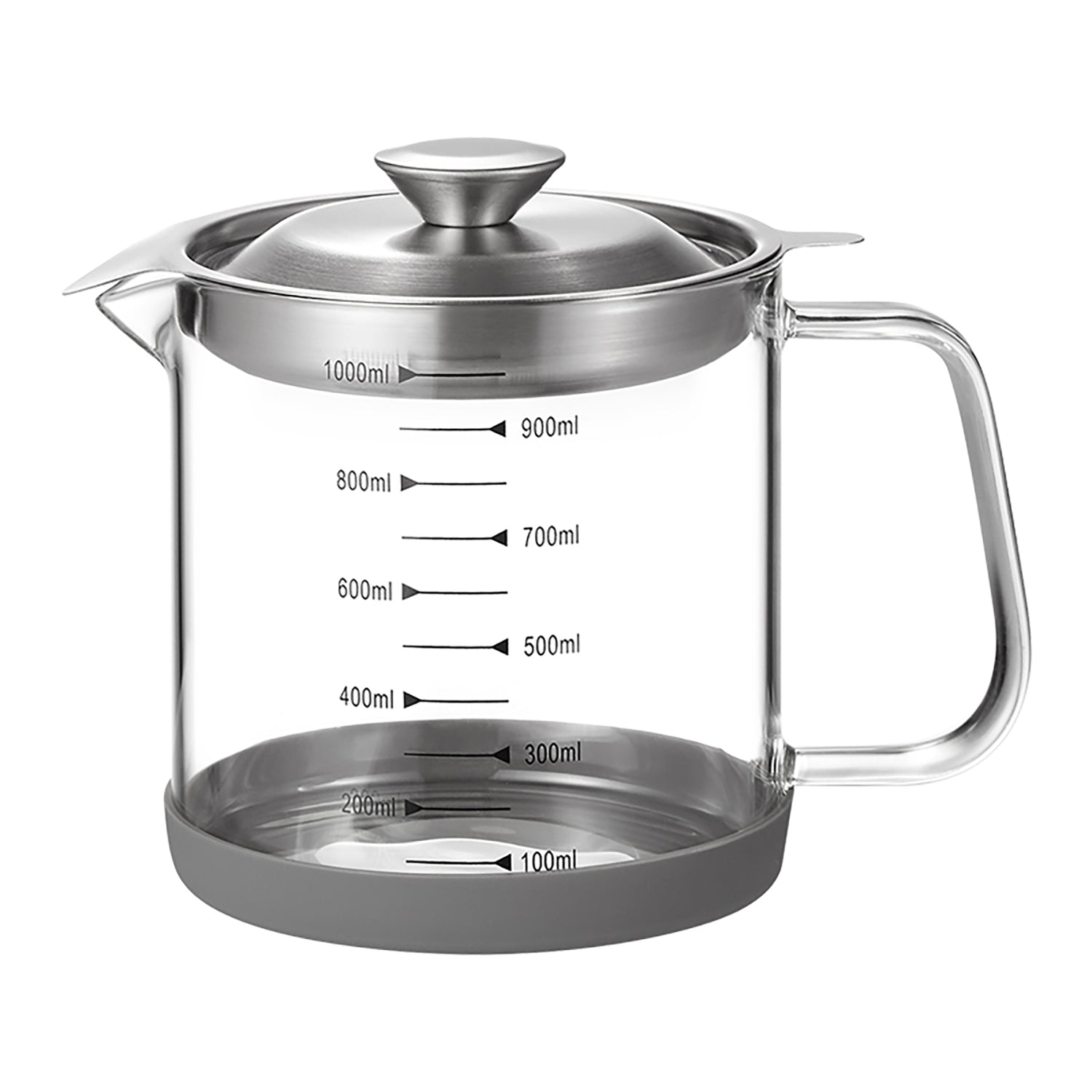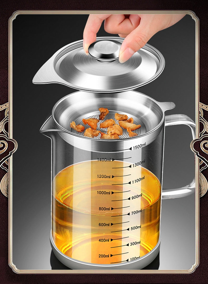 | 品質表示 | 材質:耐熱ガラス(耐熱温度差120℃)油こし/SUS304(ステンレス) 容量:1000ml/1500ml/1800ml 重量(個箱含む) 600g サイズ: 19 x 11 x 12.5 cm |