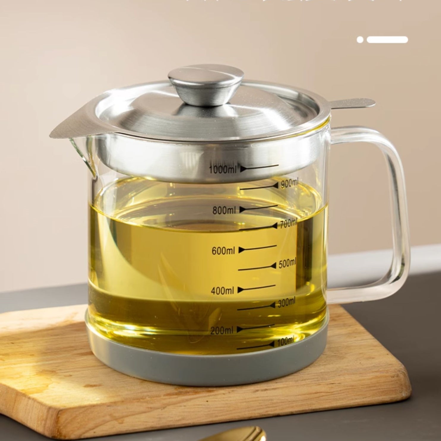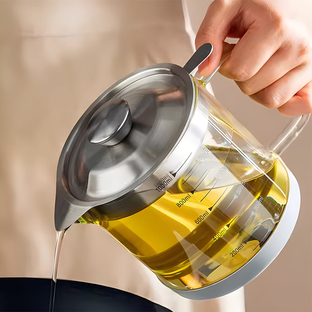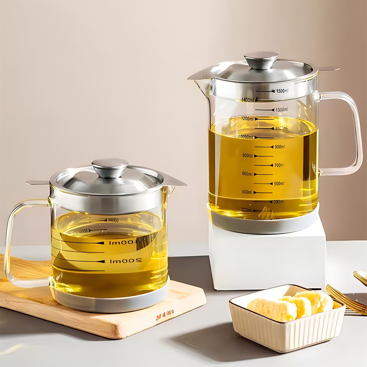 食卓を美しく清潔で機能的に♪耐熱ガラスだからできる万能型 オイルポット 見やすい目盛り付き フタ付き清潔&オシャレ ♪IwaiLoft 1000ml/1500ml/1800ml 油ボトル