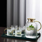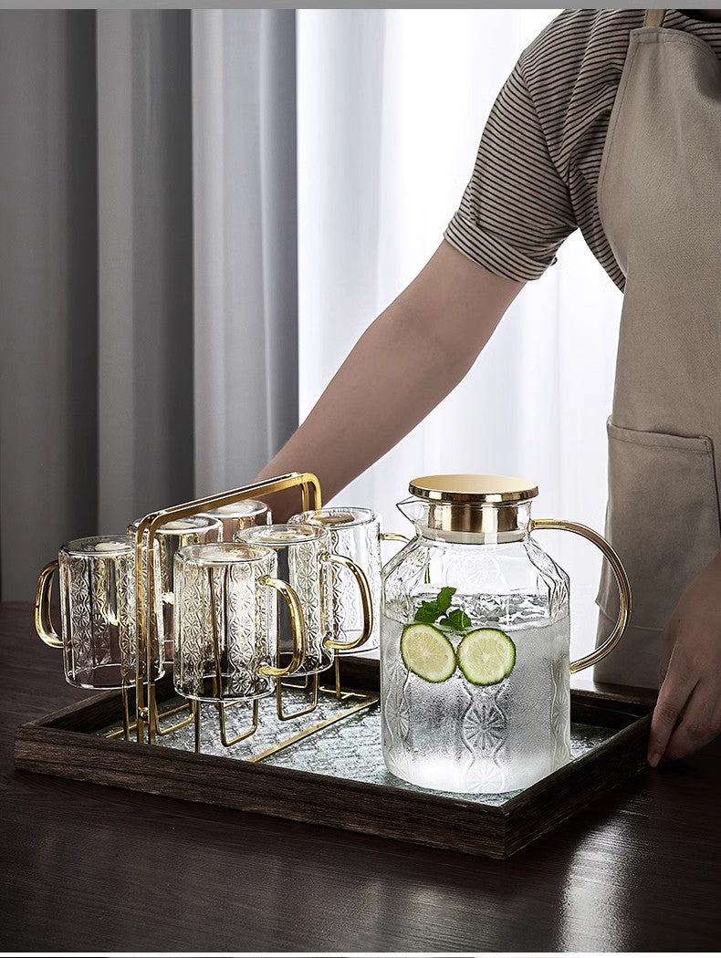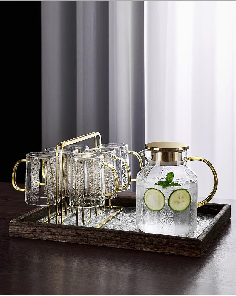 この美しい耐熱ガラス製のピッチャーとグラスセットは、一人暮らしの方にもぴったりなサイズで、日常使いに最適です。クリアなガラスに施された繊細なフローラルパターンが、どんな食卓にも上品なアクセントを加えます。ピッチャーは冷たい飲み物はもちろん、耐熱性があるため熱い飲み物にも対応しており、一年中活躍します。